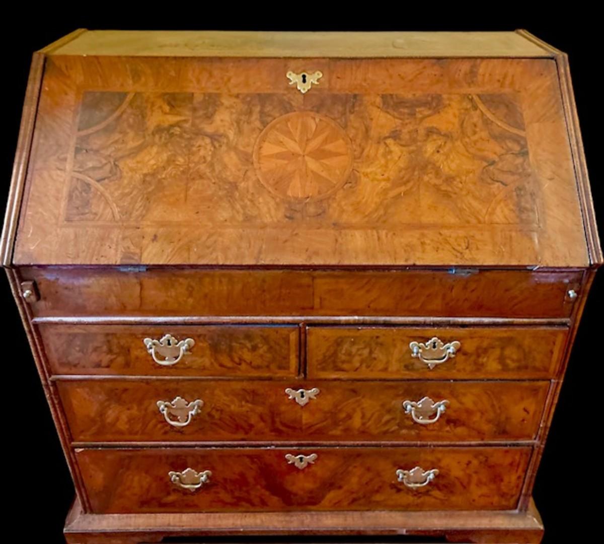George I Inlaid Burl-Walnut Slant Slant-Front Desk