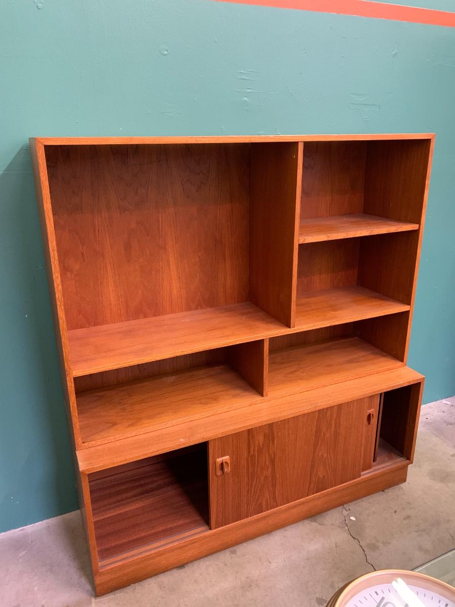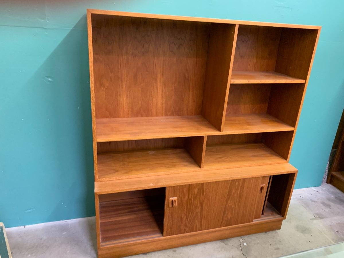 Mid Modern Cabinet and Hutch. 48”L x 51.5”H x 15.5”D. 2 pieces.