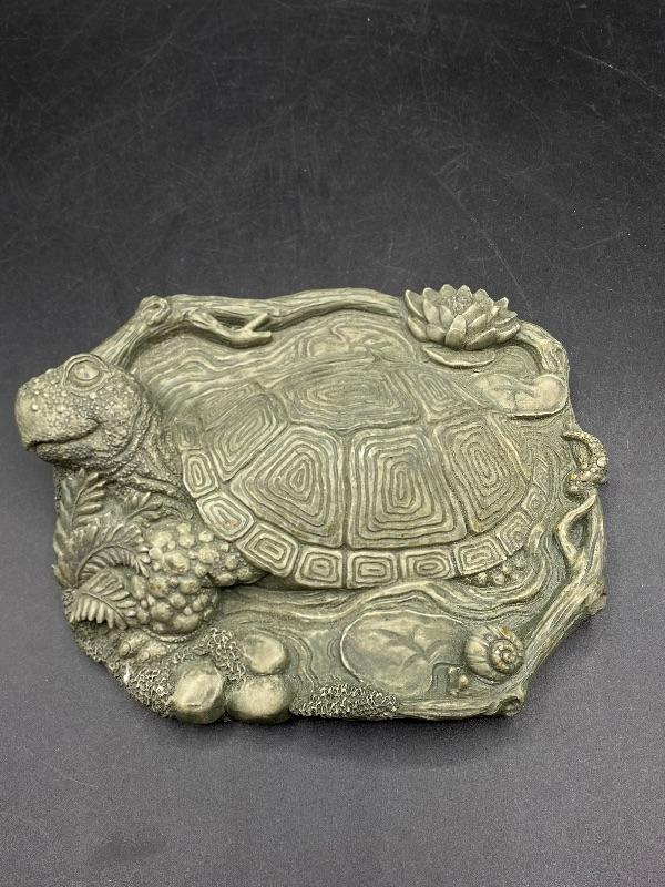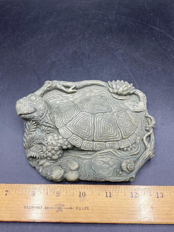 Midwest of Cannon Falls small tortoise wall plaque. About 6" size. Two small hooks on the back. Could easily be placed in a garden planter.