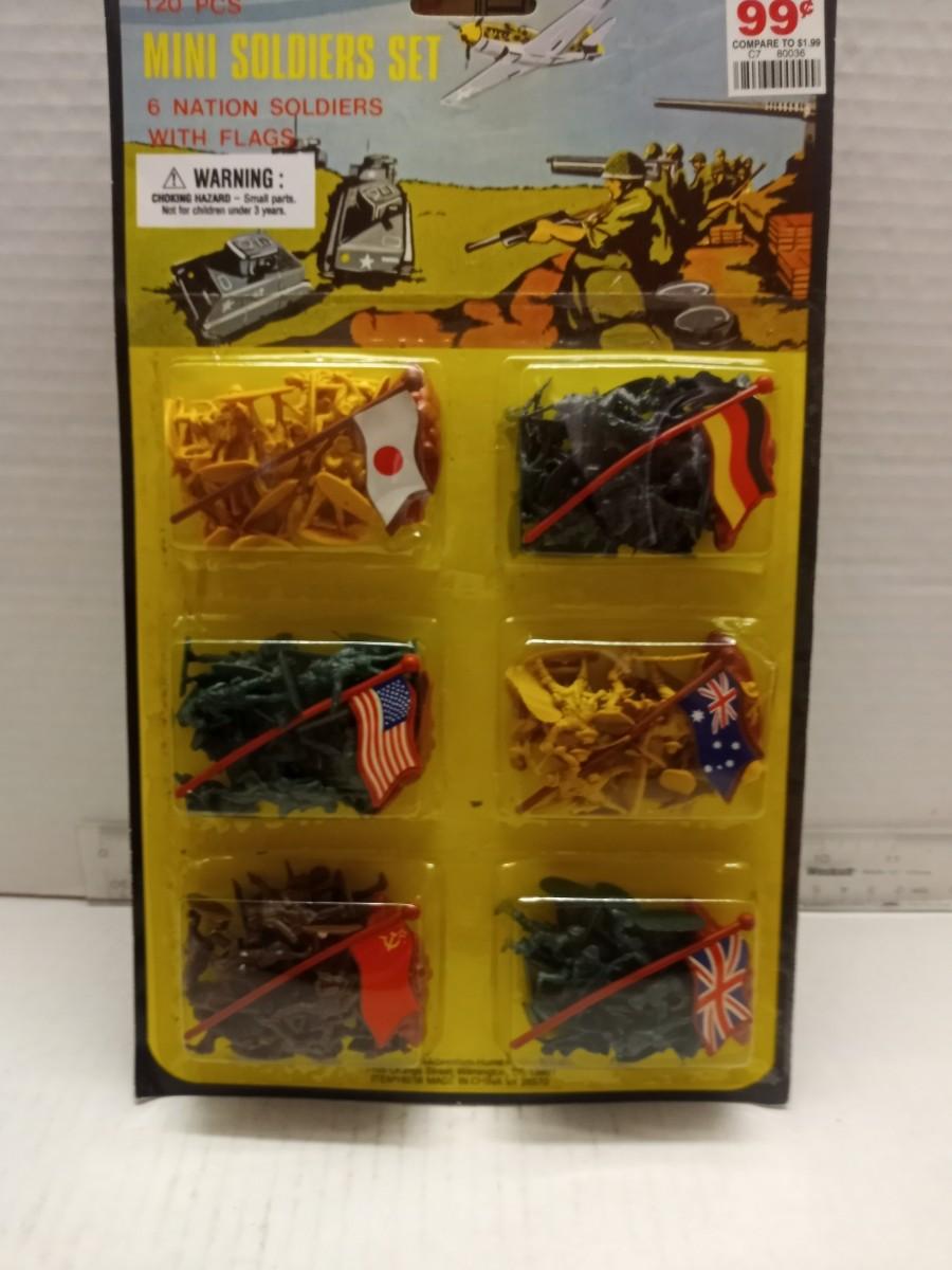 MidWestern Dst. mini solders set 6 nations and flags1996 new in package