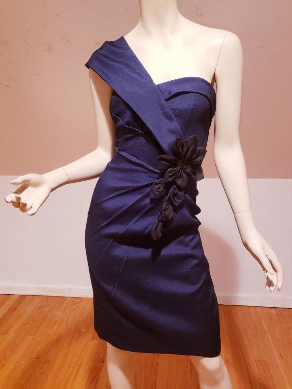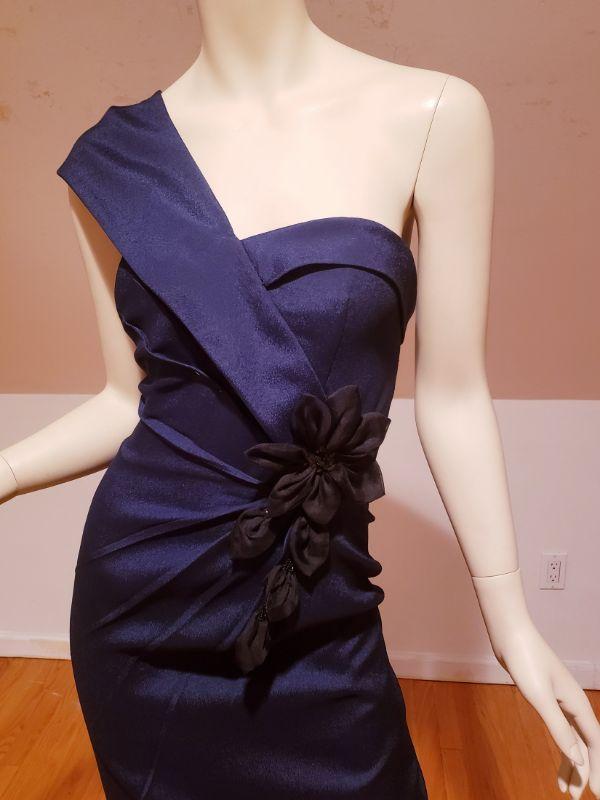 A truly beautiful navy dress in Dark Blue with a floral black 3D applique' with sequins and beads.