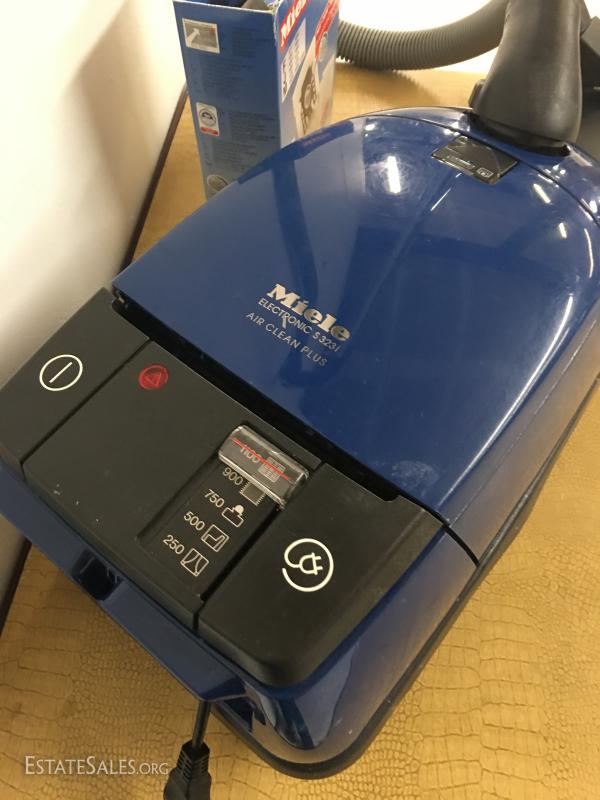 Mile canister vacuum, model number S323i. In good working condition includes a partial box of bags.
