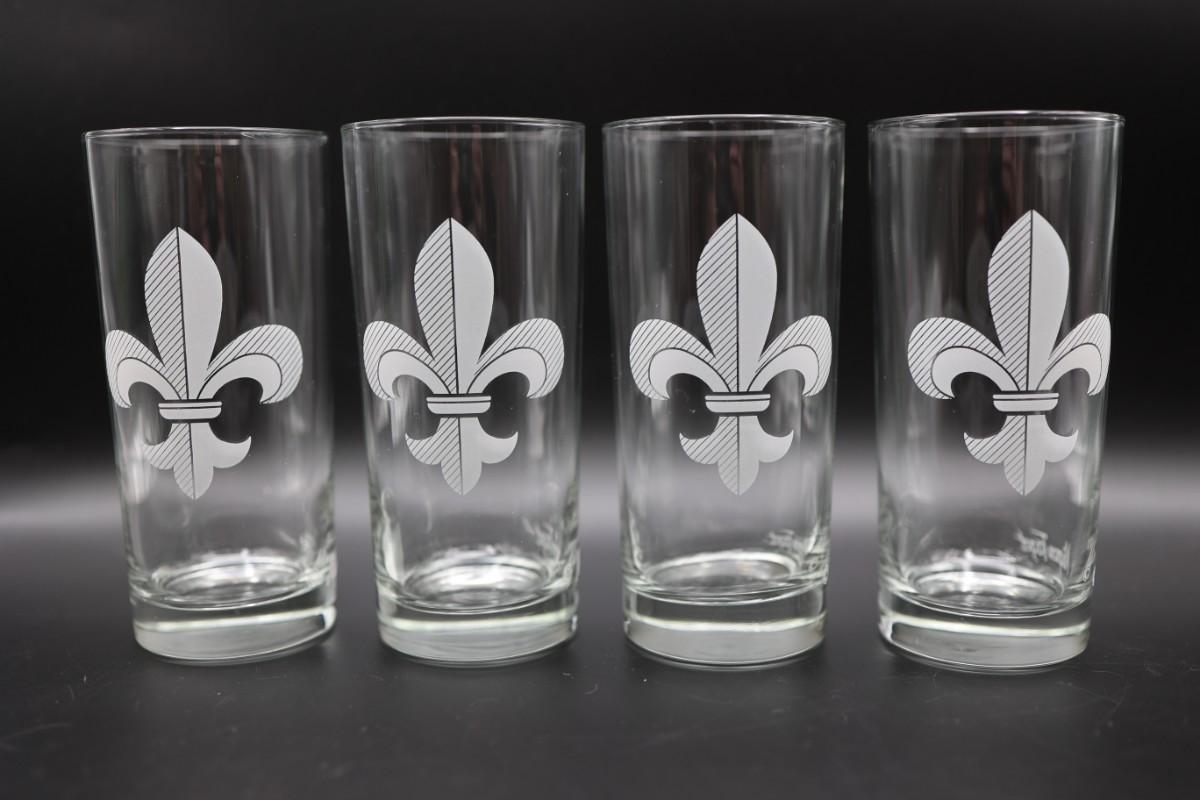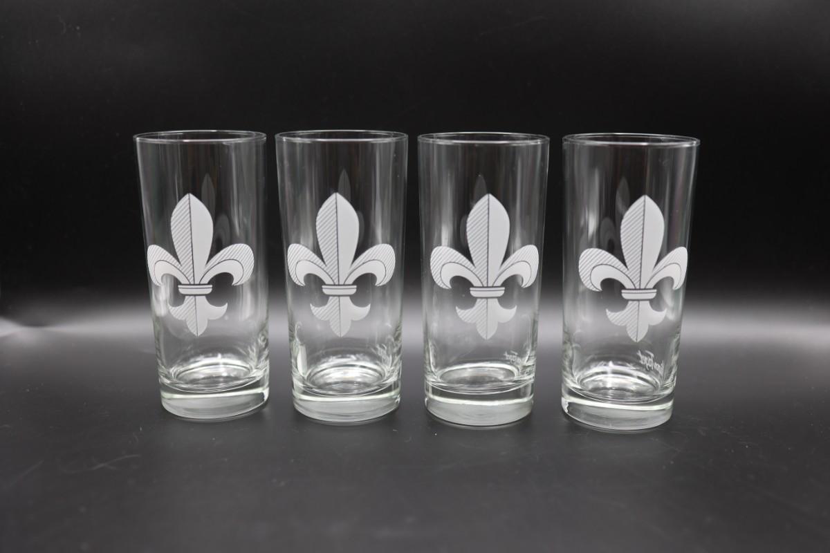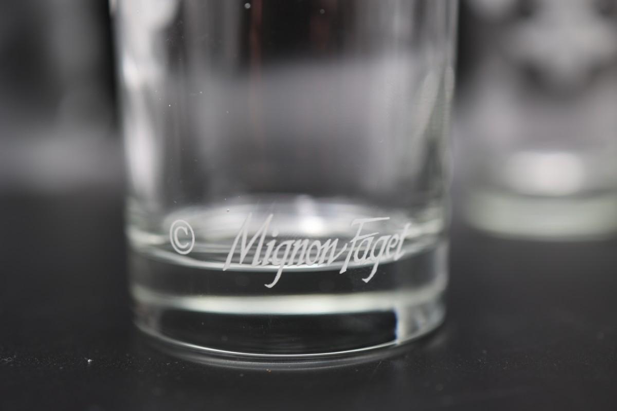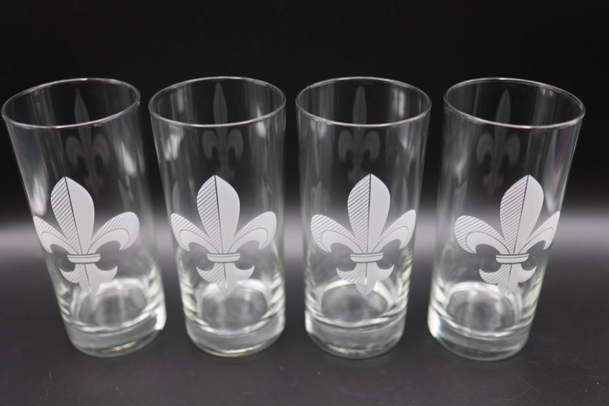Four tall Mignot Faget tall drinking glasses. Like New!