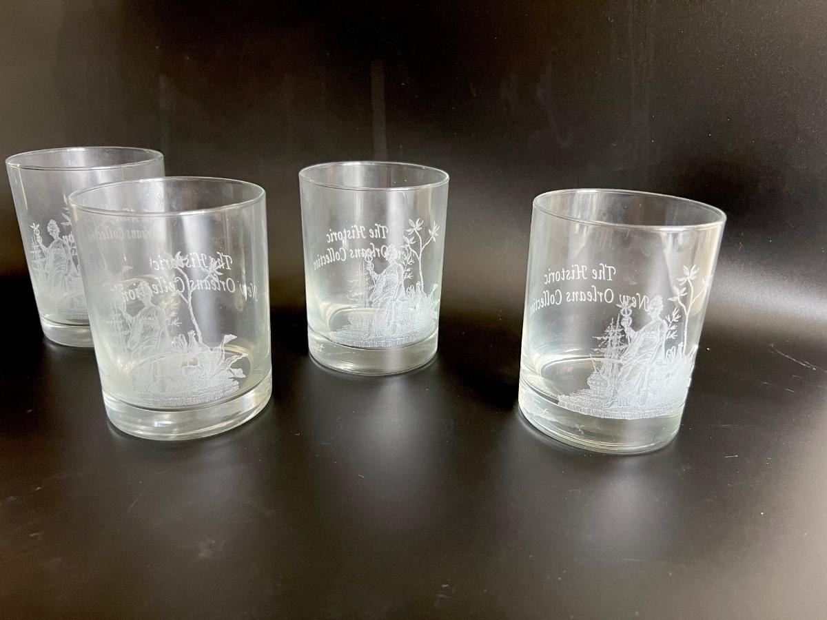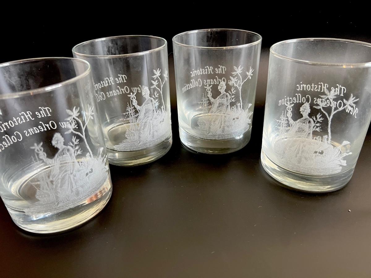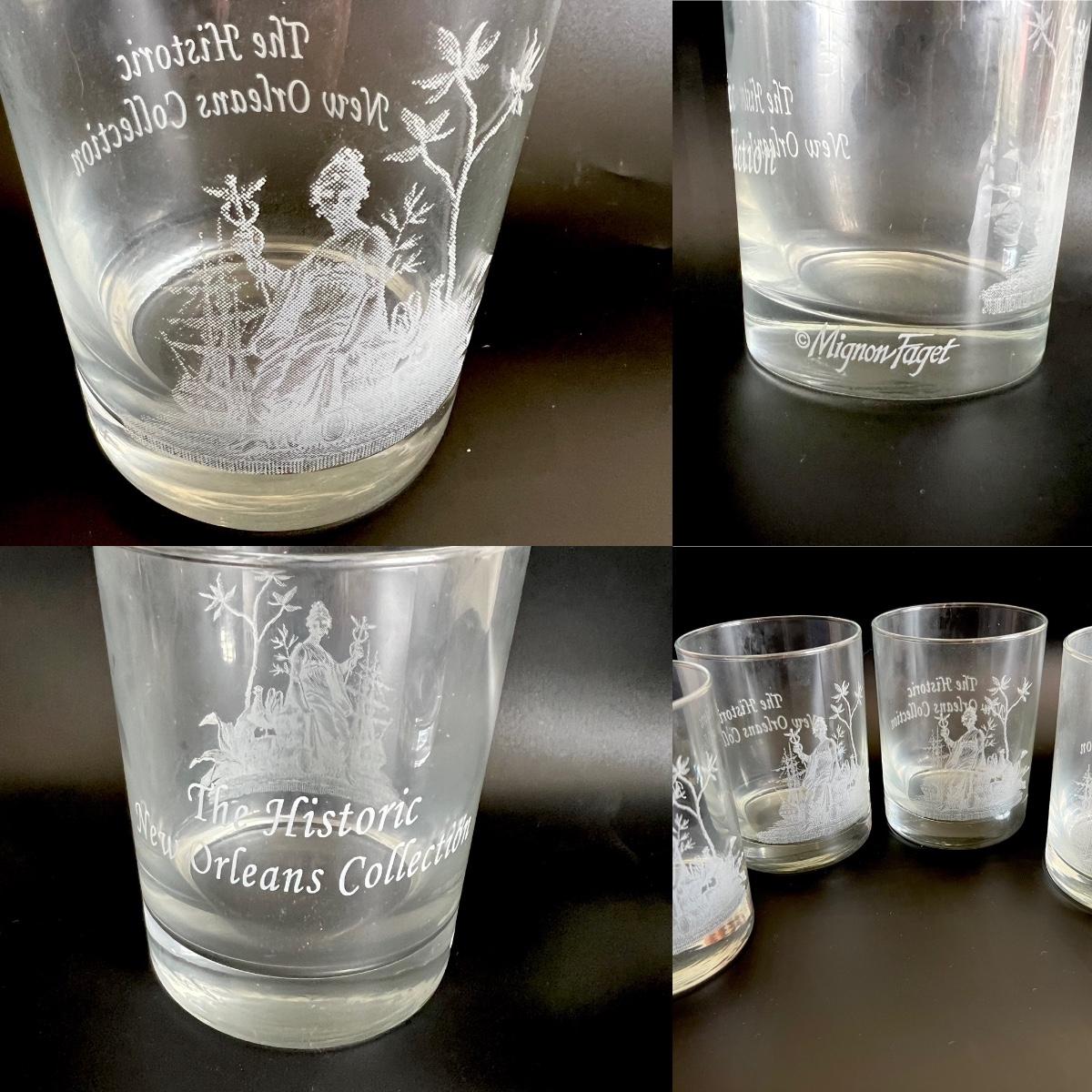 Set of 4 glasses mignon faget the historic New Orleans collection etched glasses measure 4 inches tall