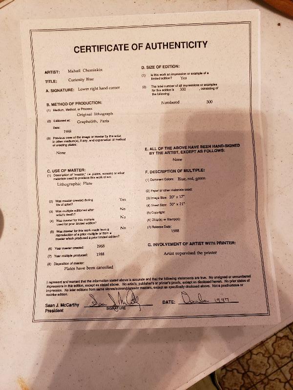 Mihail Chemiakin, " Curiosity Blue ", Limited Edition, Lithograph, Signed