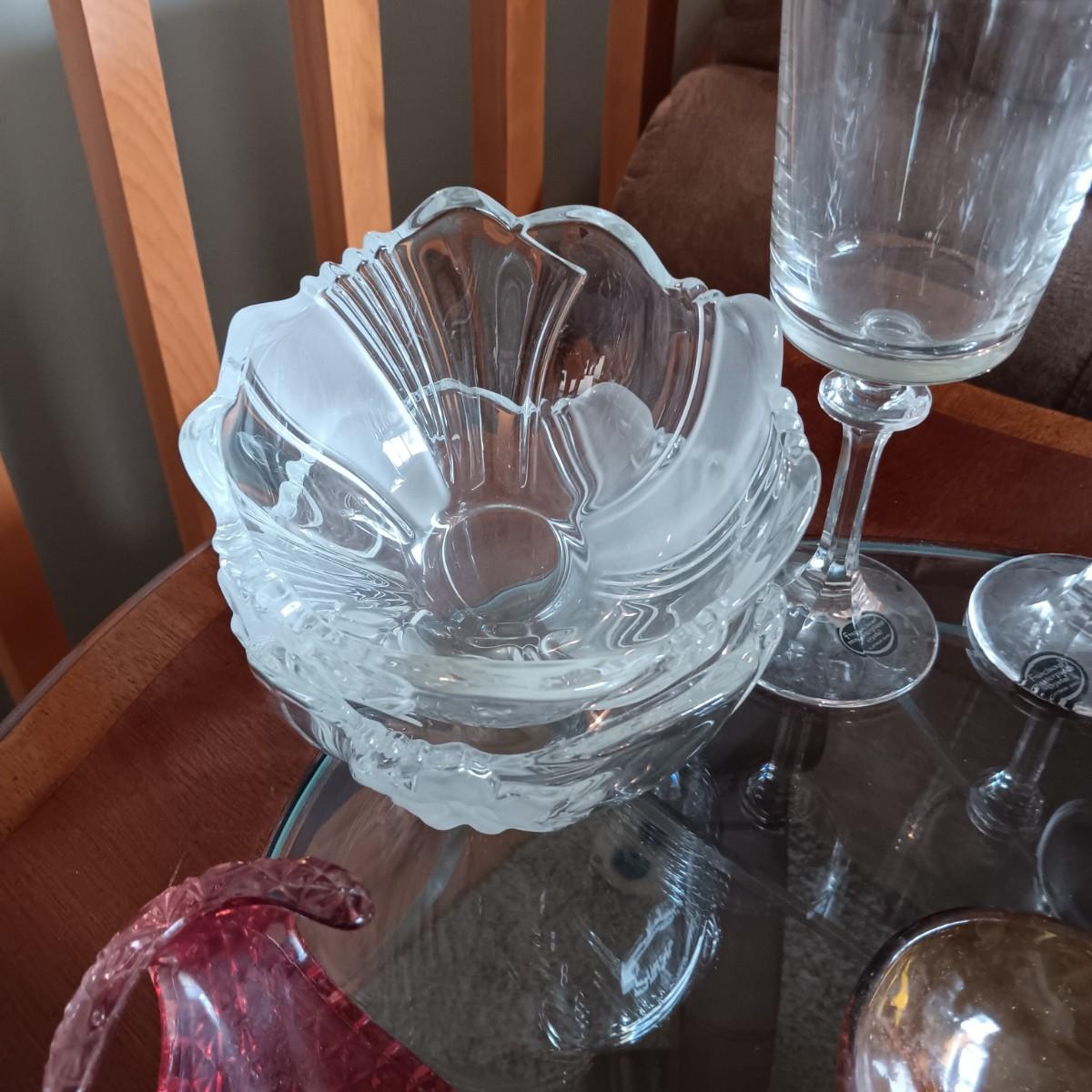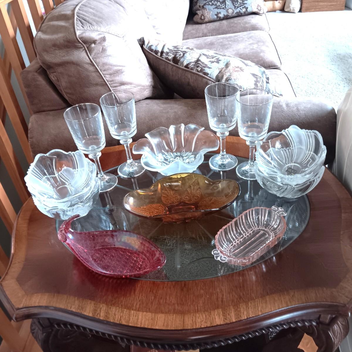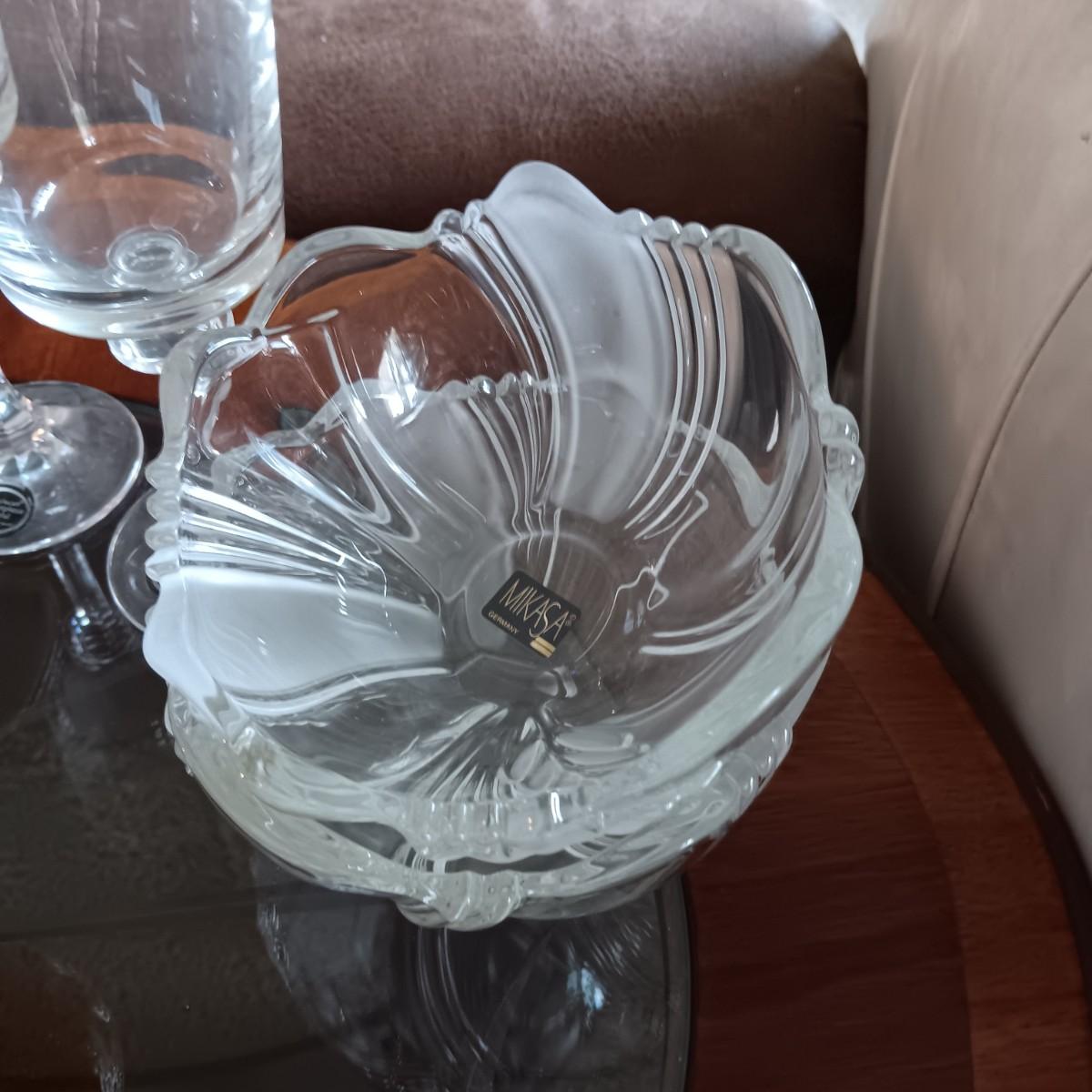 MIKASA BOWLS, FRANCISCAN CRYSTAL STEMWARE AND COLORED GLASS SERVING PIECES