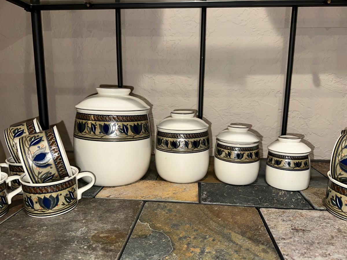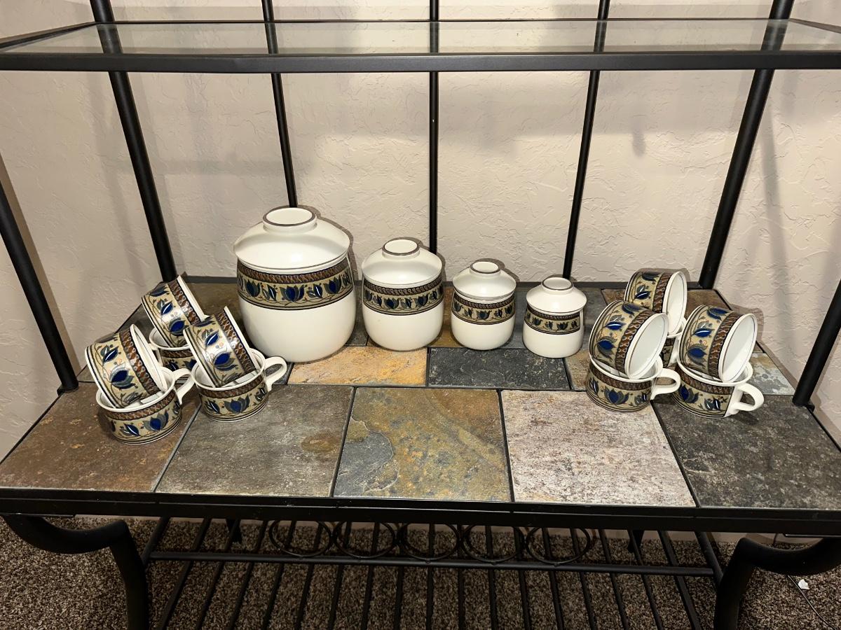 MIKASA CANISTER SET AND COFFEE MUGS