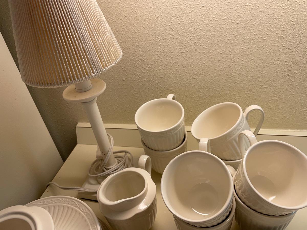 Includes 8 salad plates and mugs