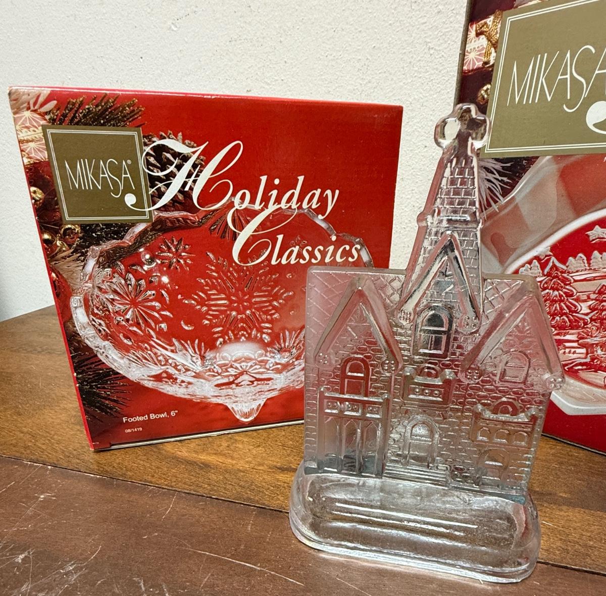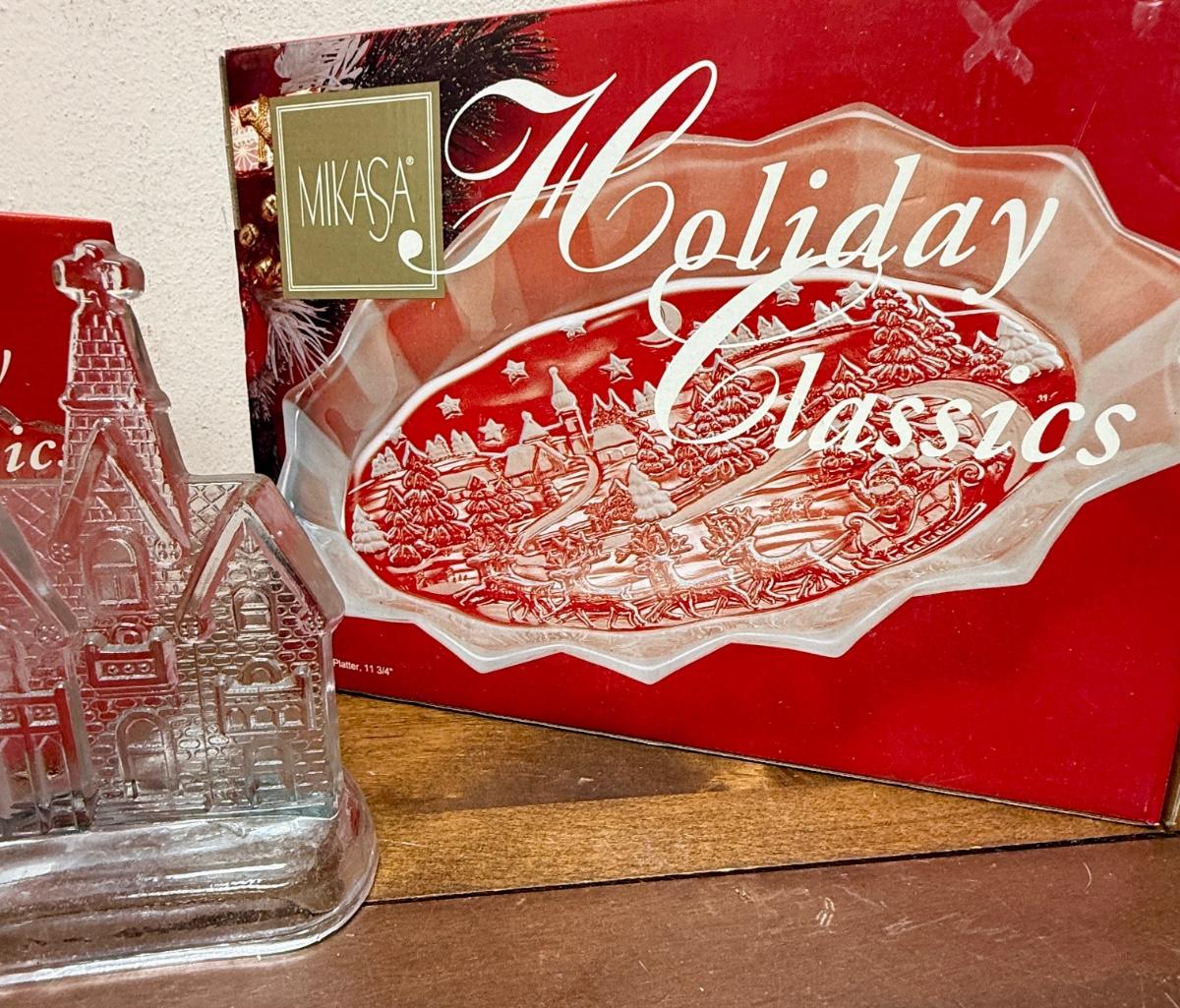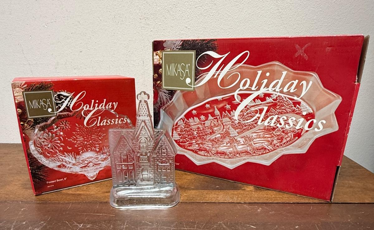 Mikasa Christmas Glass Platter, Footed Bowl, and Tea Light Holder