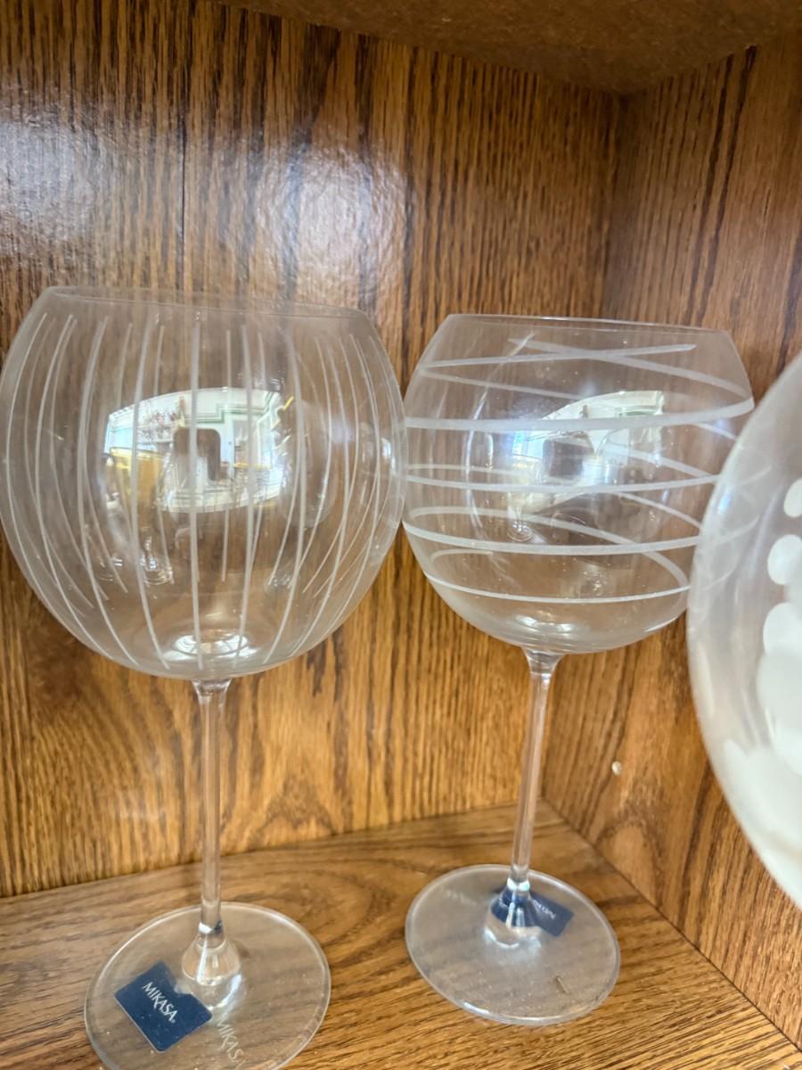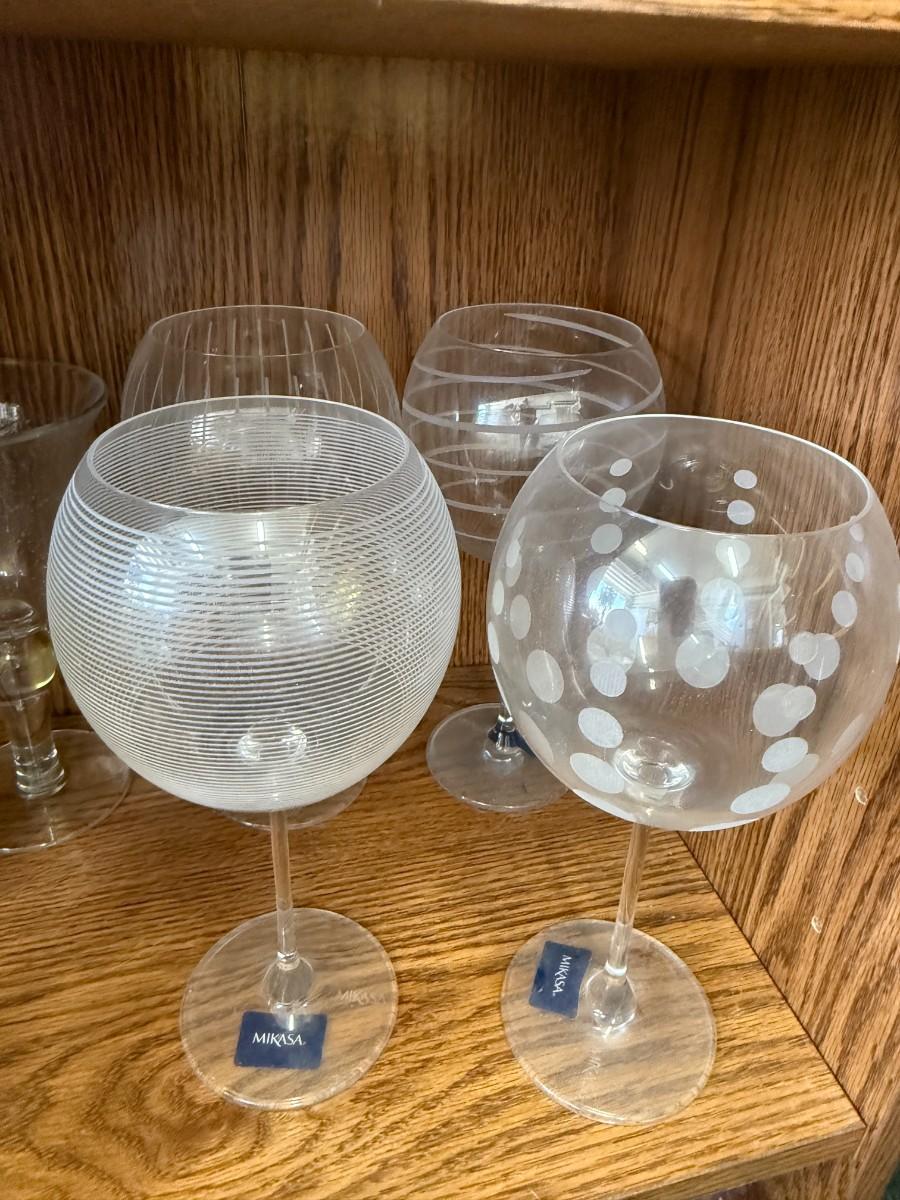 MIKASA CLEAR CRYSTAL CHEERS BALLOON WINE GLASSES 9 1/8". Set of 6 Etched