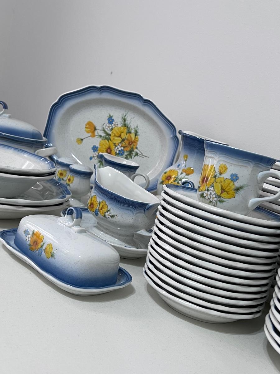 Total of 83 pieces. Set includes plate setting & serving dishes