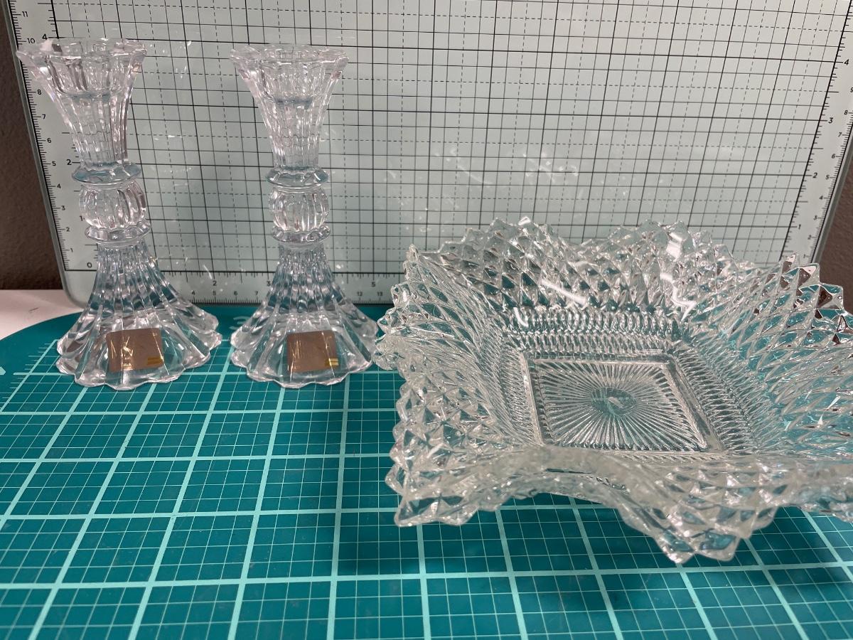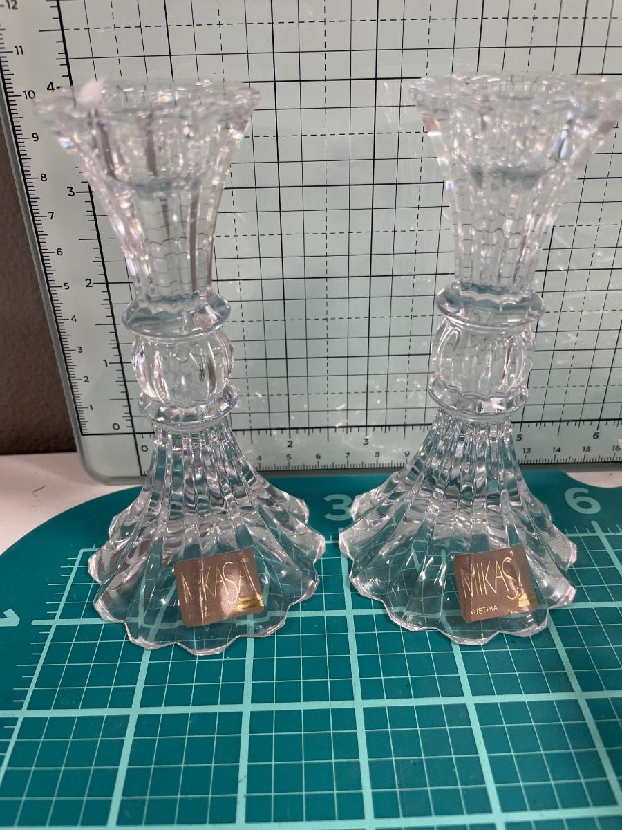 2 crystal bowls and 2 Mikasa crystal candle holder