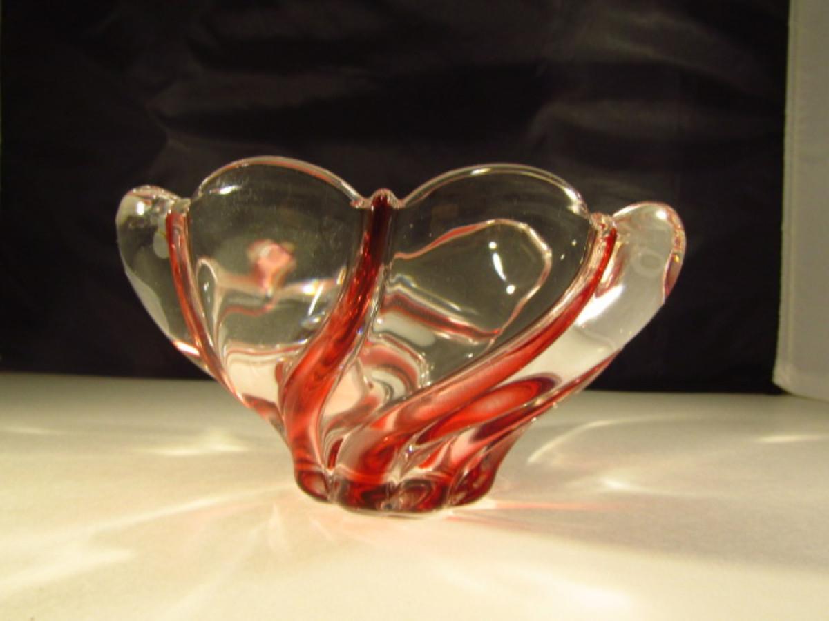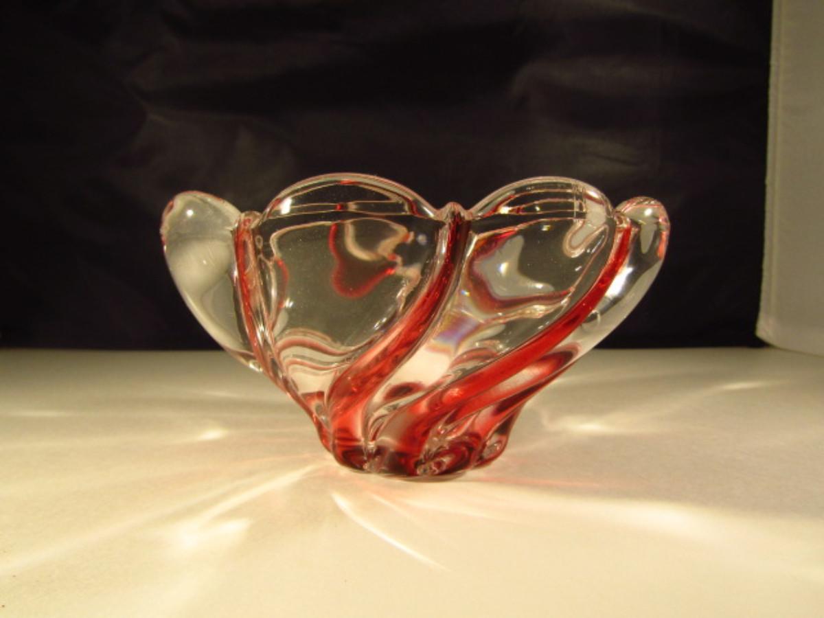 Mikasa Crystal Clear and Red Swirl Candy/Nut Bowl