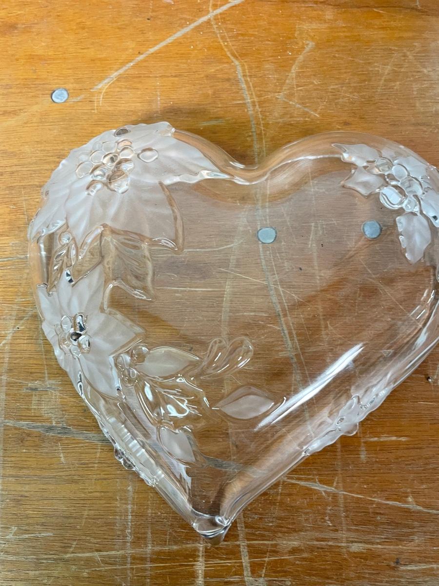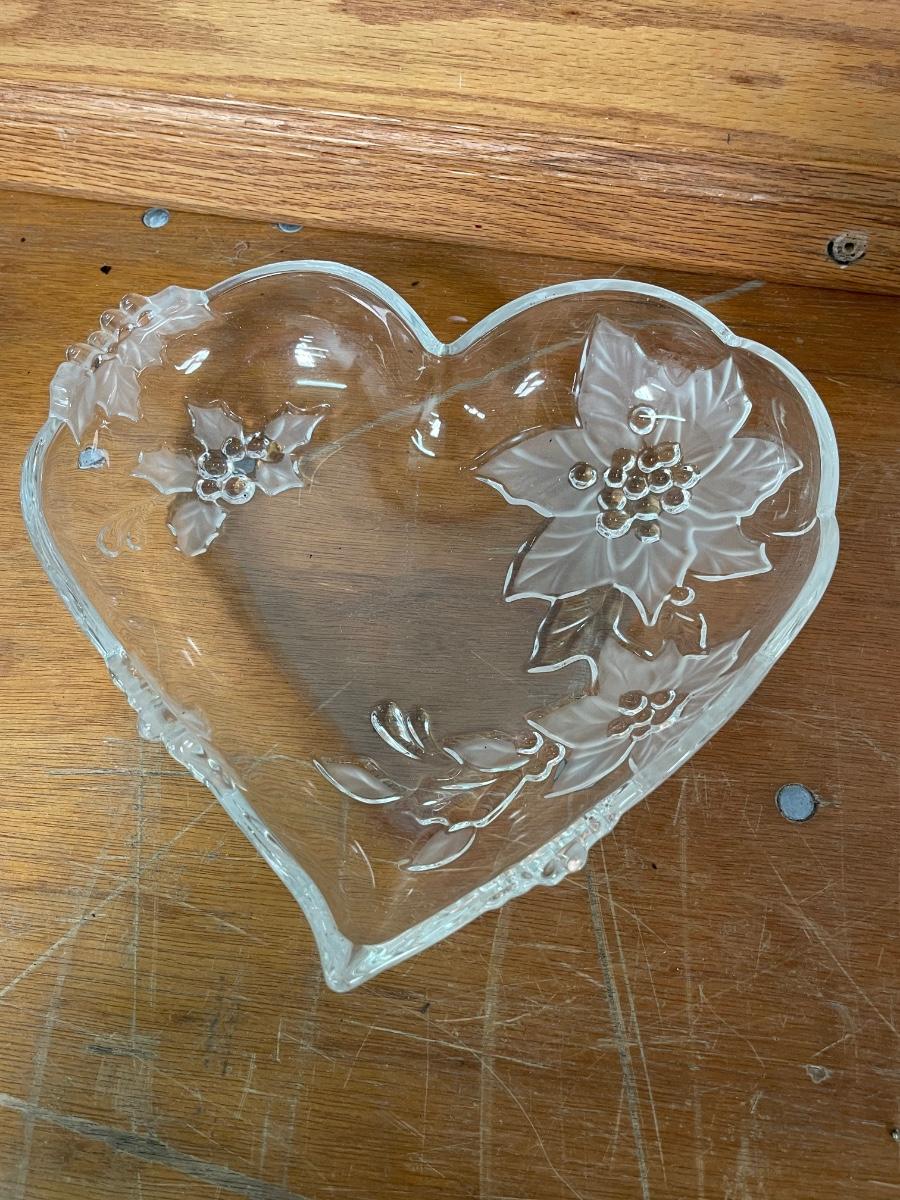 Mikasa Crystal Vintage Heart Serving Platter Dish Bowl Holiday Poinsettia Floral