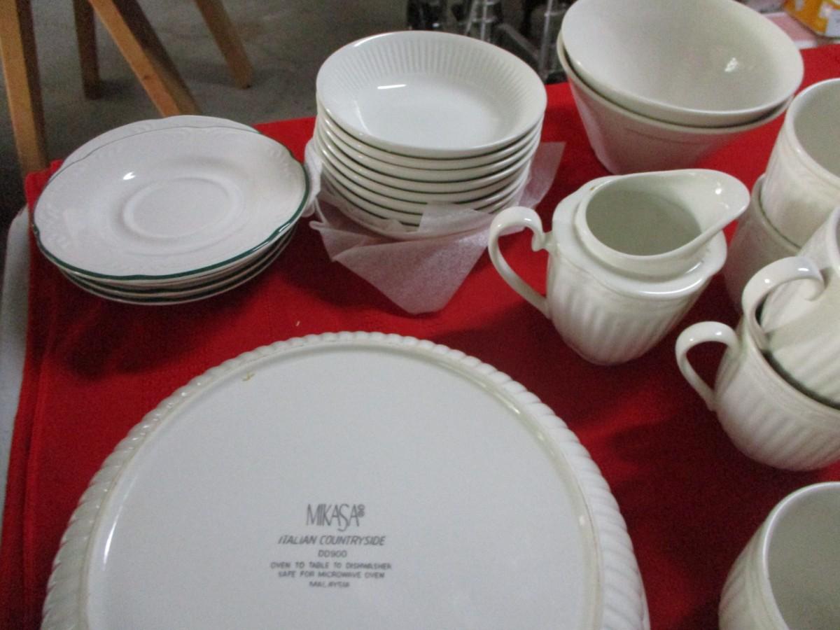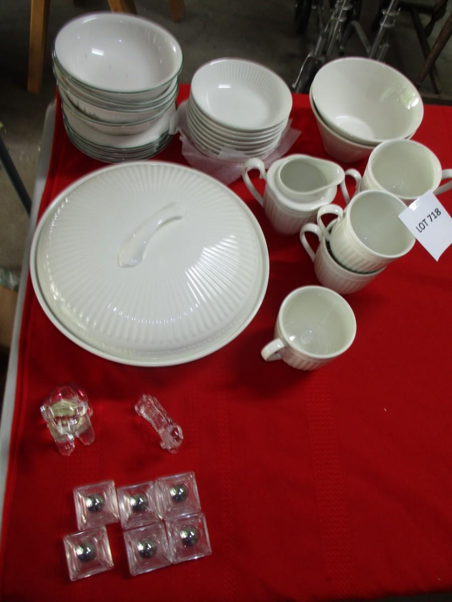 Italian Countryside off white. Set of Pfaltzgraff bowls. Clear S & P Shakers