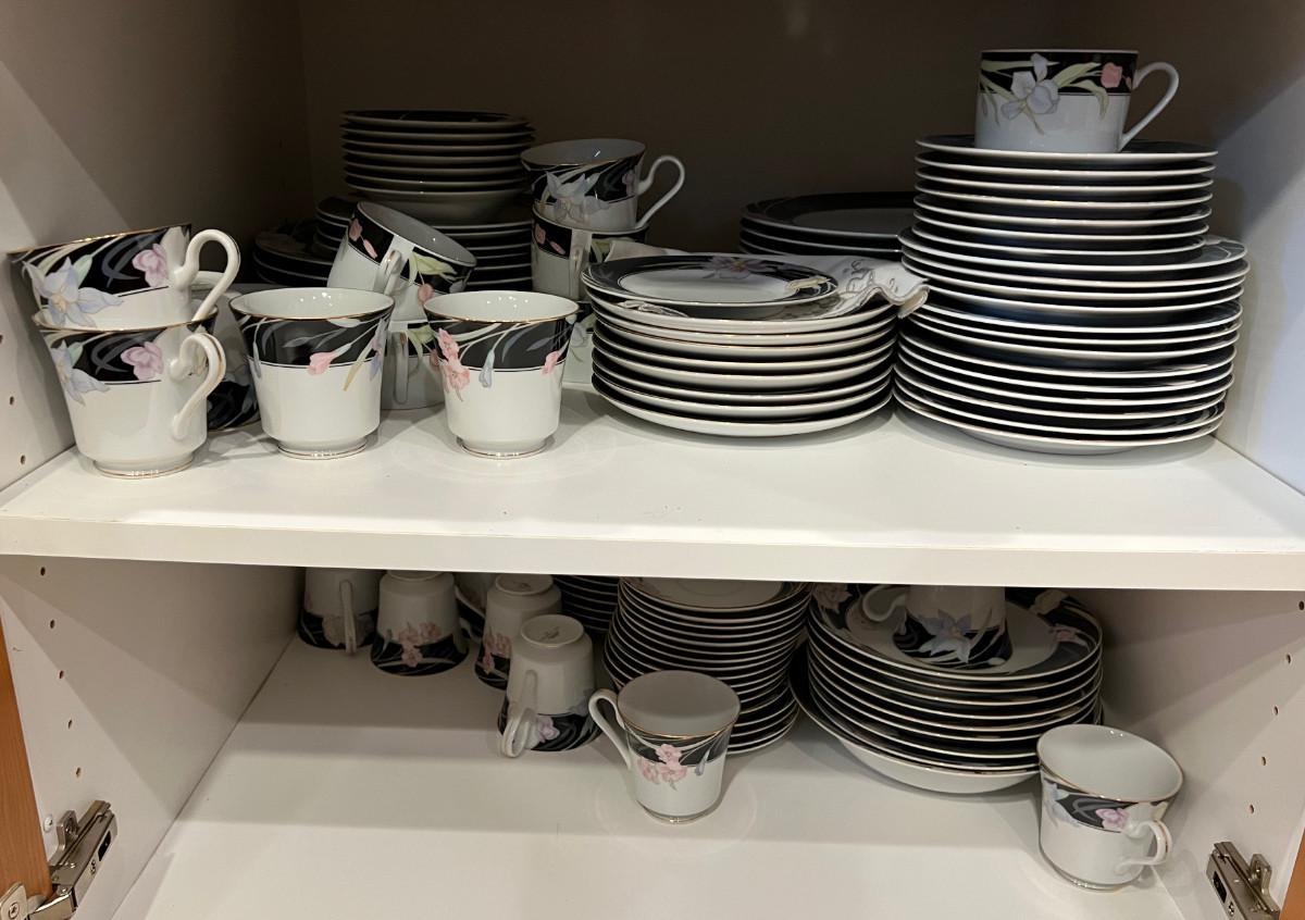 Massive set of Mikasa China "Charisma" service for 12 with serving dishes. If shipping is required on this set there will be a $200 boxing fee added the cost of shipping.