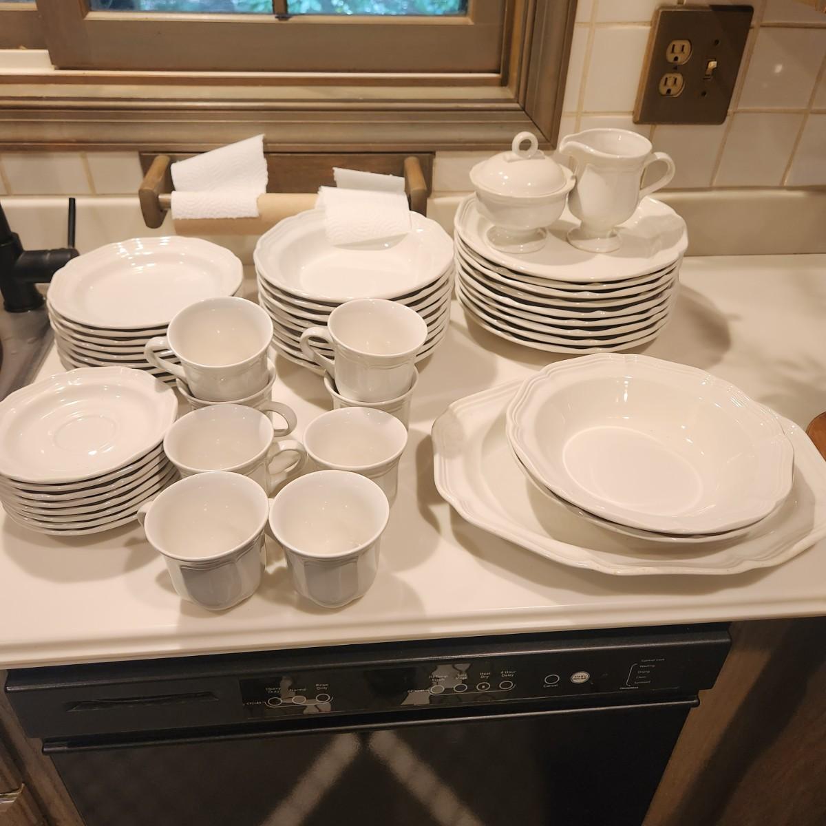 Mikasa French Countryside China Dishes, Plates, Cups, Creamer, Sugar, Bowls, Serving Plates, Butter dish.