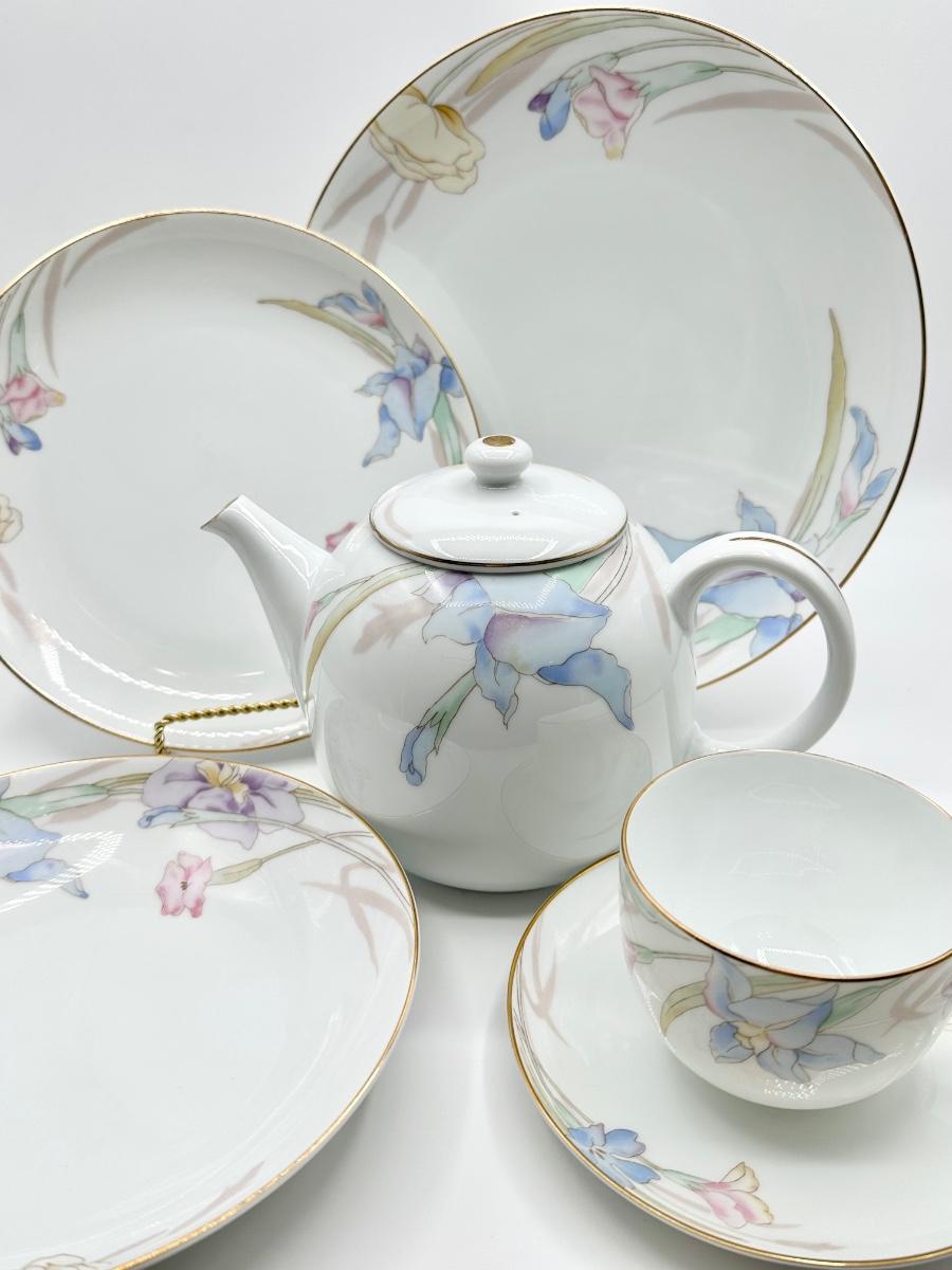 See photos for the pieces included ~ coffee/tea pot had a minor chip at the tip of spout (see photo)
