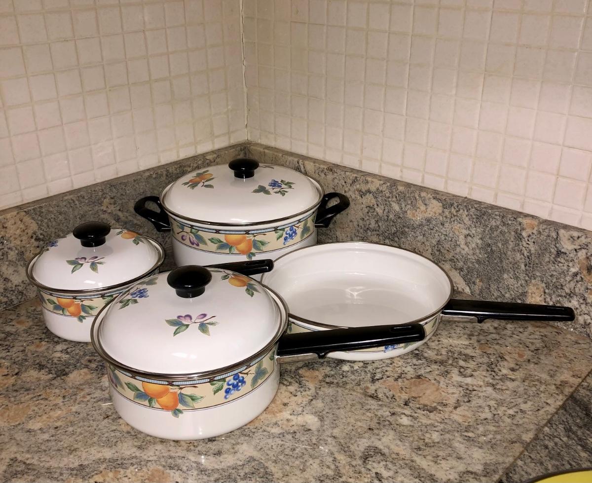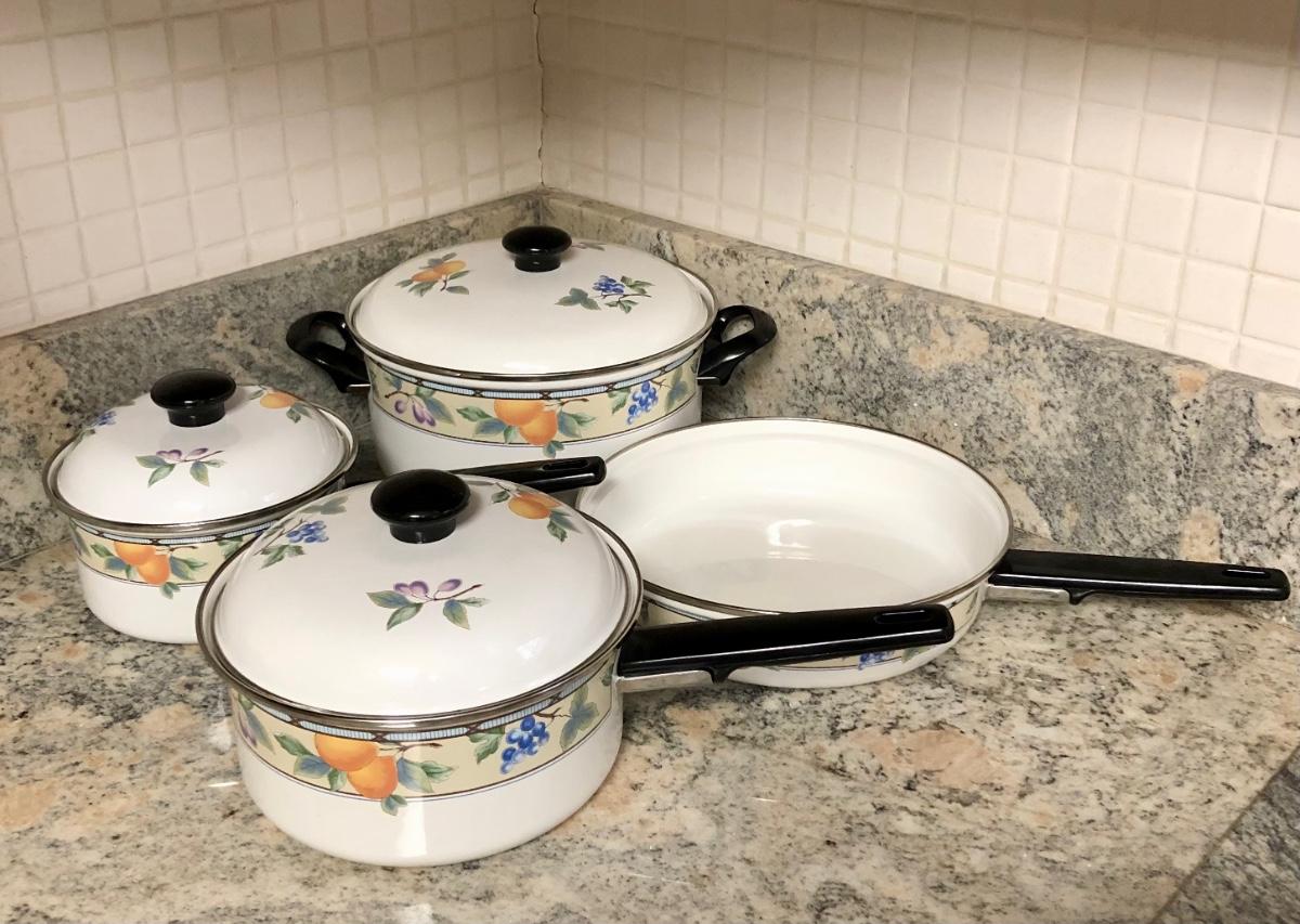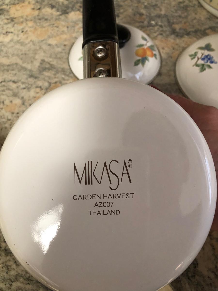 Mikasa Garden Harvest 4 piece pot and pan set with lids.