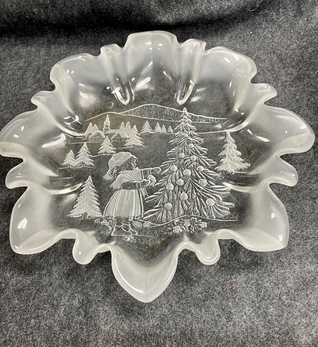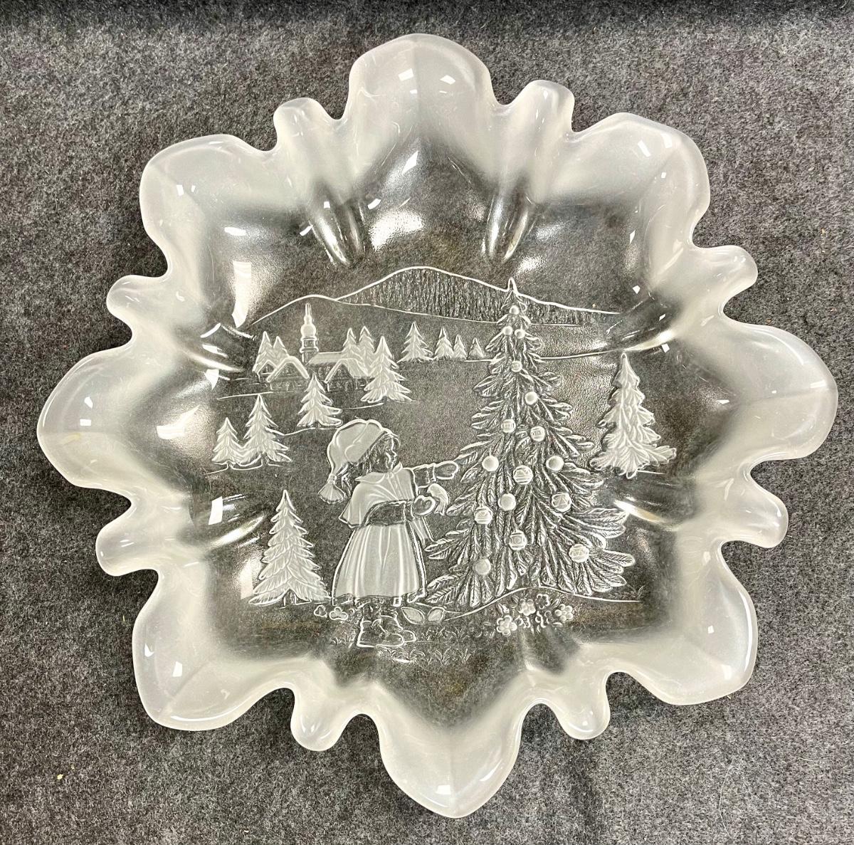Mikasa Christmas Holiday Ruffled Glass Serving Dish Bowl. In good used condition.