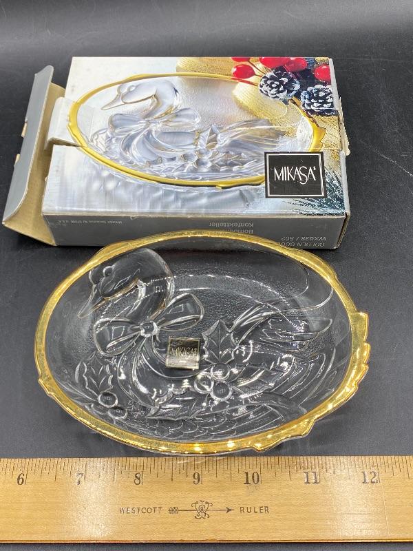 Mikasa Golden Goose candy dish. Comes in original box. Good condition.