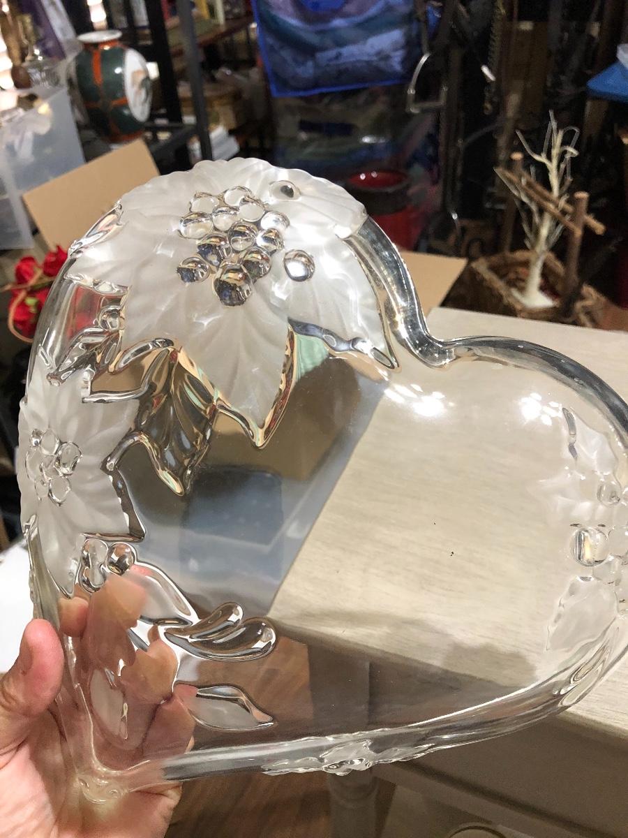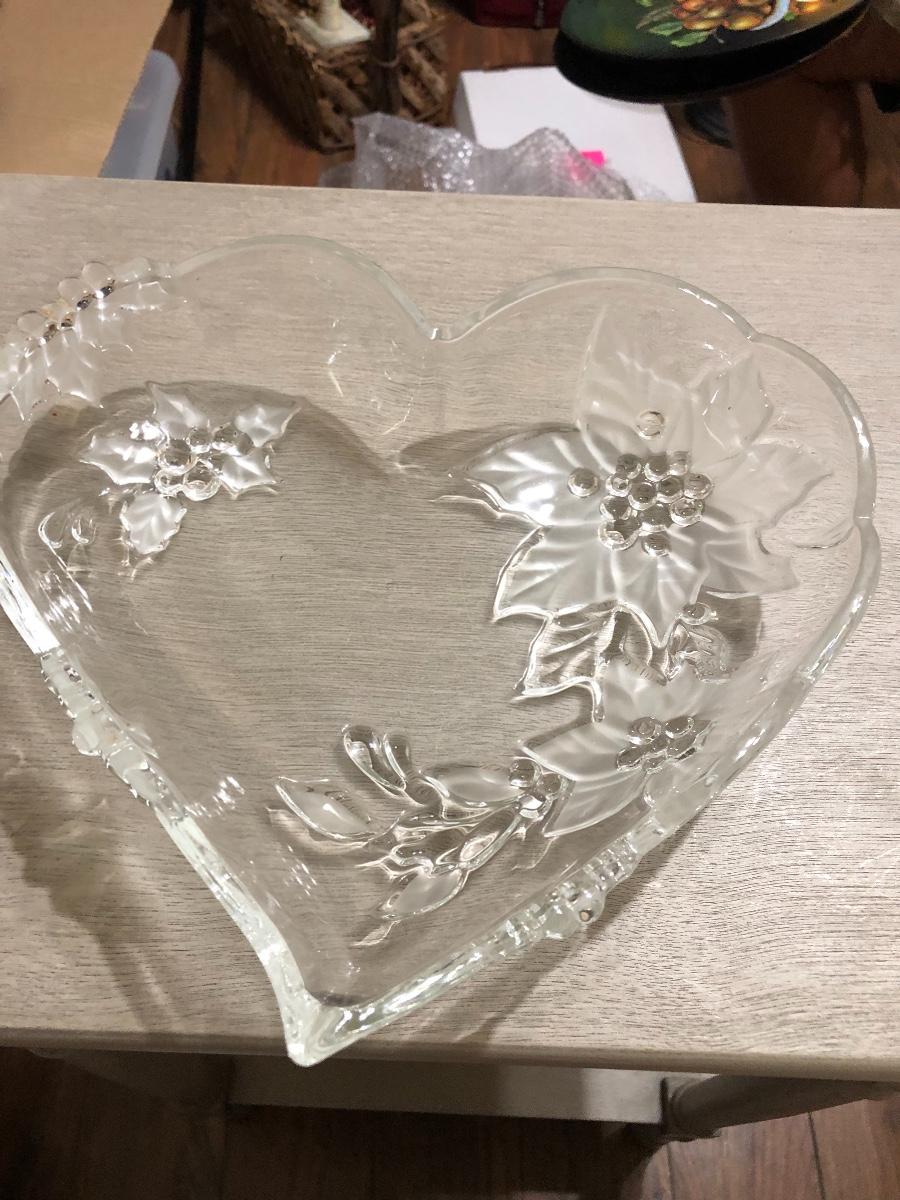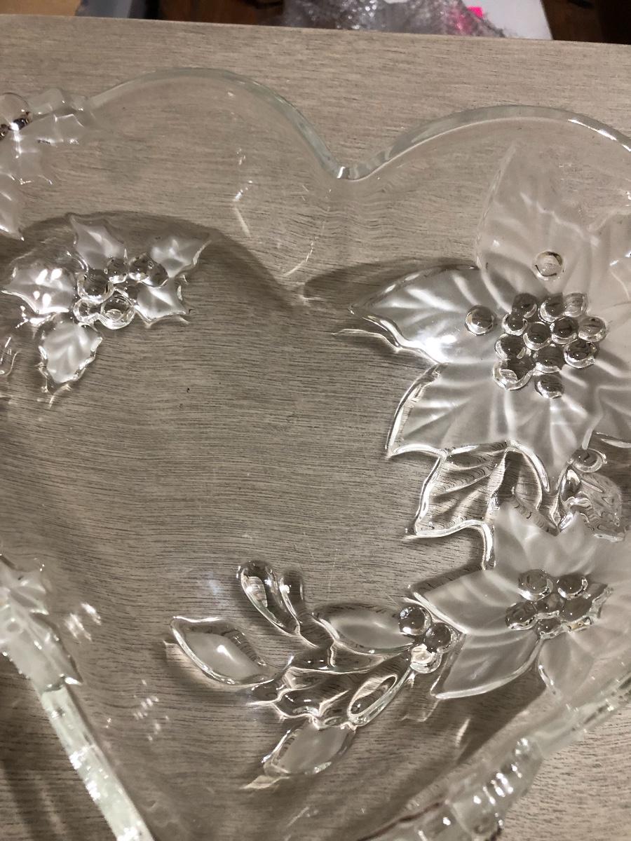 Mikasa Crystal Glass "Holiday Bloom Christmas Poinsettia" Heart Candy Dish Bowl
