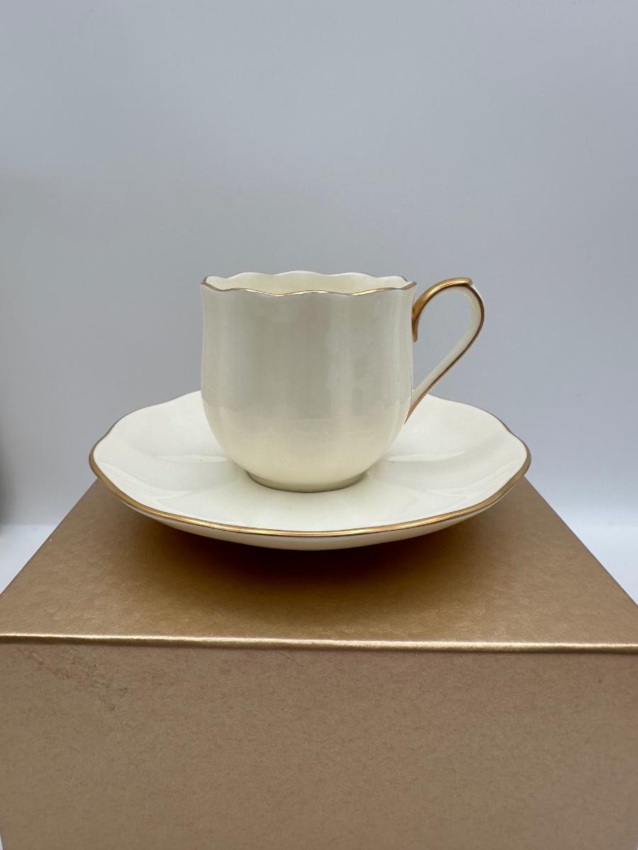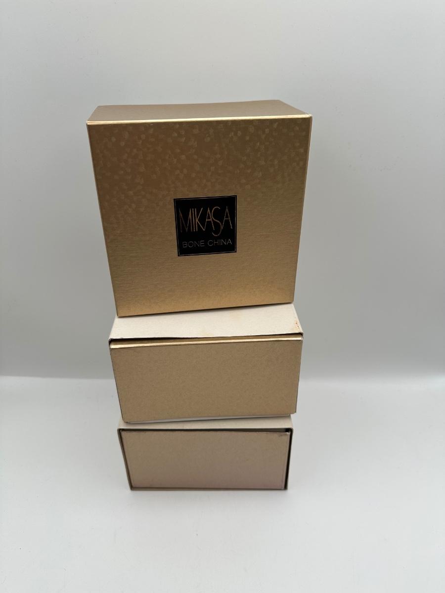 4 demitasse cups and 4 saucers, with boxes (one not pictured).