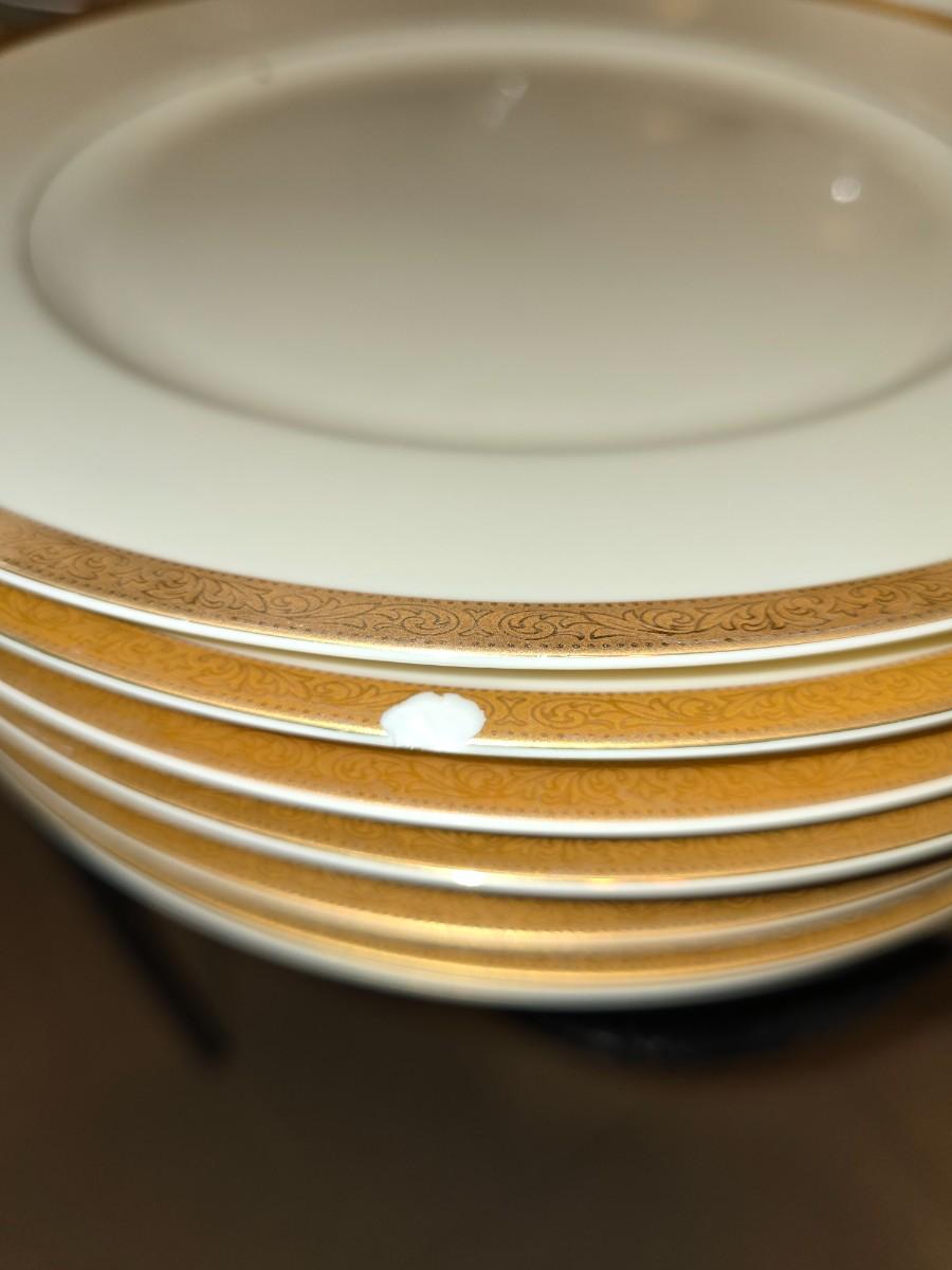 Service for 8. One dinner plate has a chip in it.