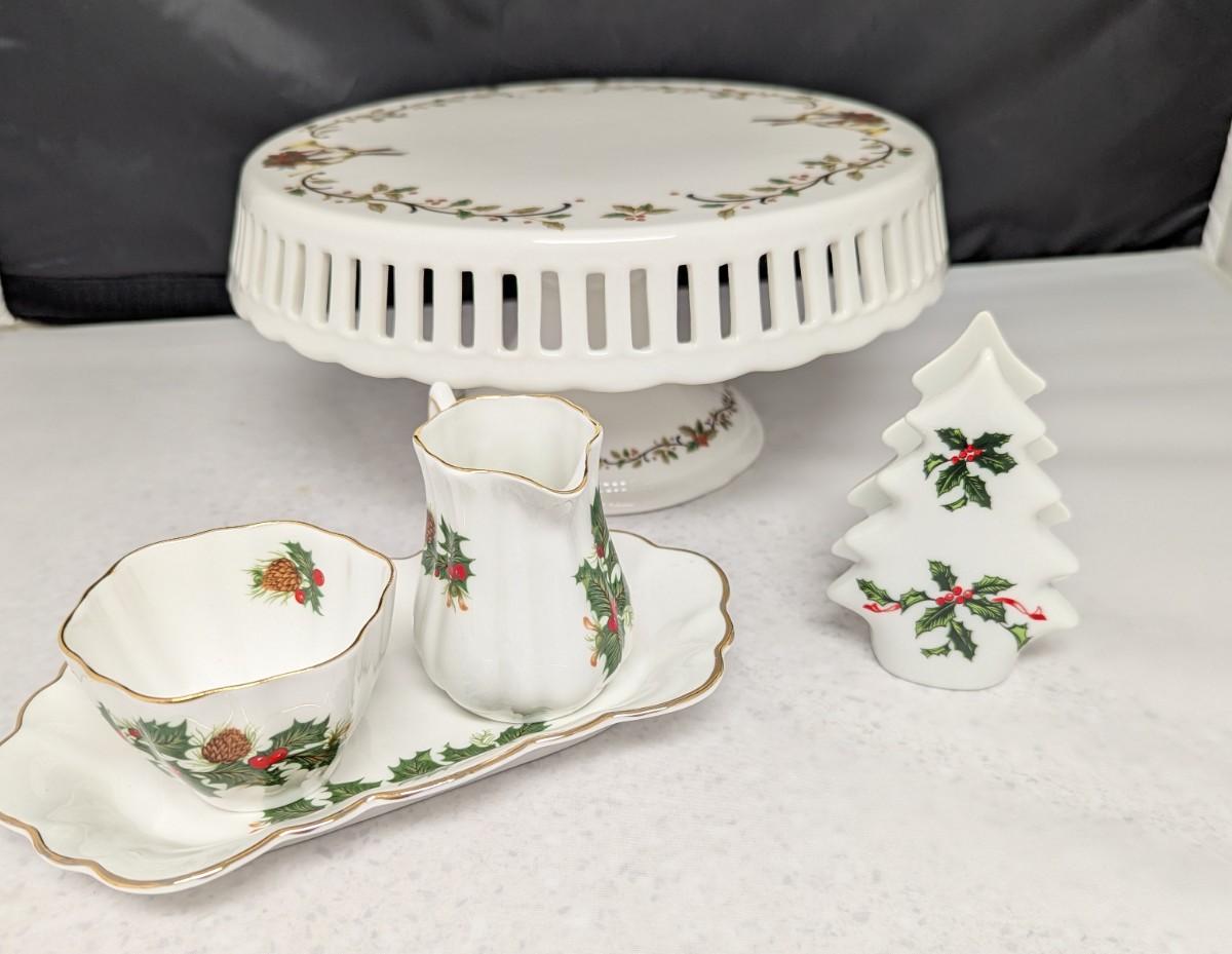 Mikasa Lefton & Rosina Fine Bone China Cake Platter Napkin Holder Creamer & Sugar Set