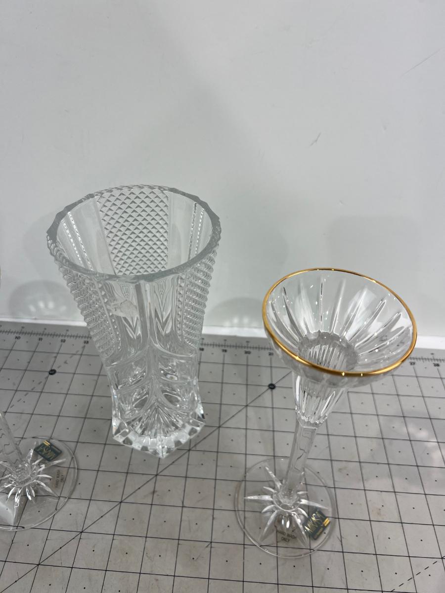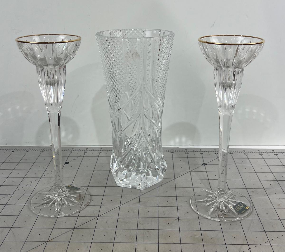 Mikasa Pair of Candle Sticks and Crystal Vase
