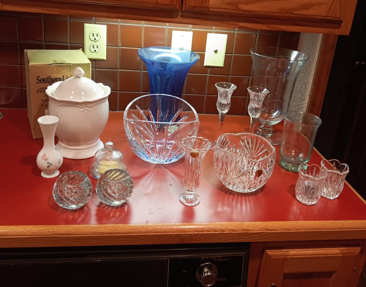 MIKASA & PRINCESS HOUSE CRYSTAL BOWLS, VASES & CANDLE HOLDERS