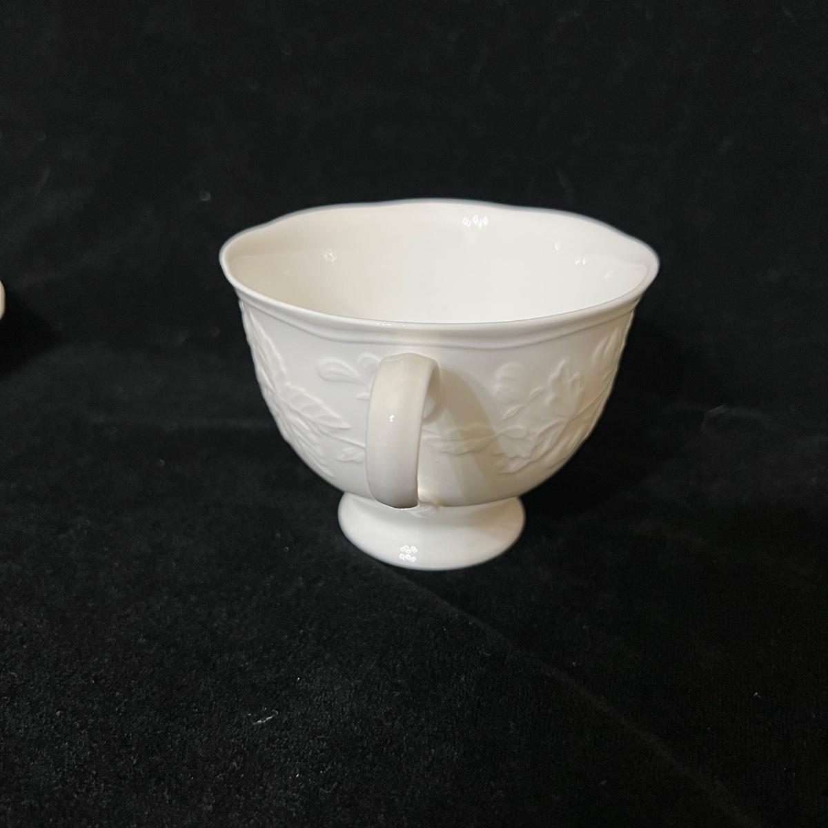 Eight Mikasa Bone China Royal Villa teacups, saucers, and bread and butter plates in excellent condition. Each piece is bright white with not a single chip, crack, or stain. The saucers are 6.25” in diameter. The teacups are 3.75” in diameter and 2.5” in height. The bread and butter plates are 6.75” In diameter. Plate stands not included. Shipping available.