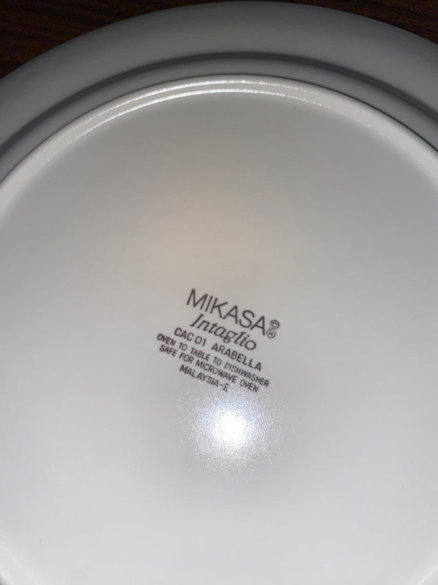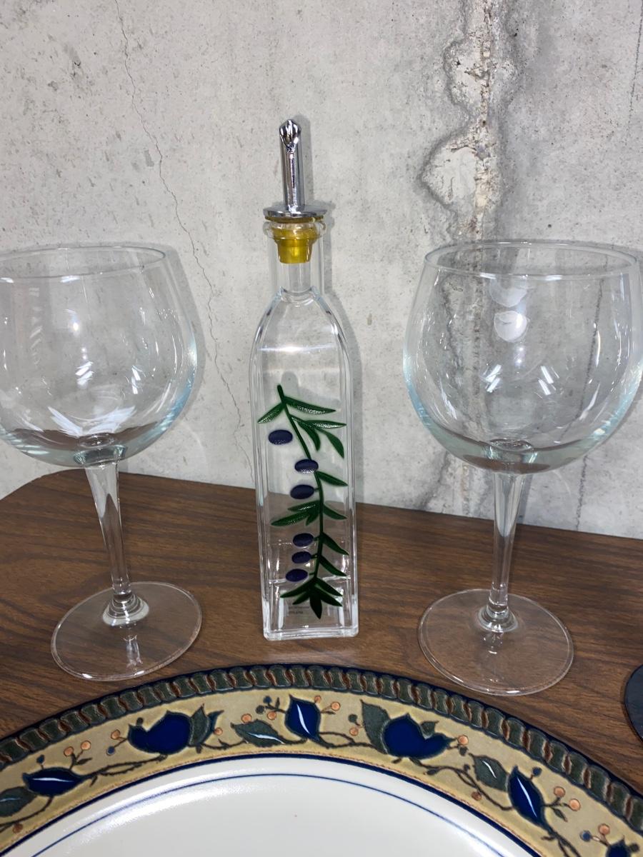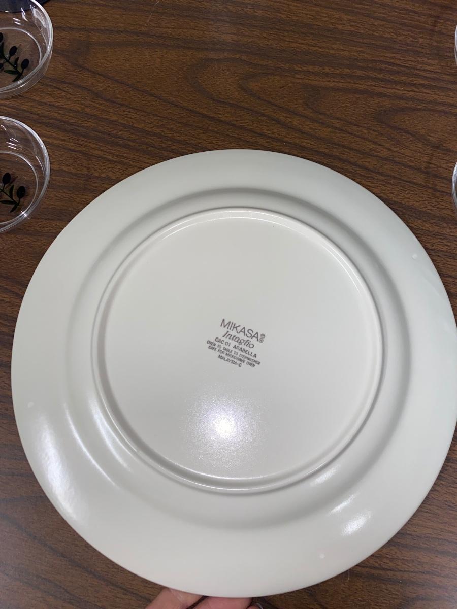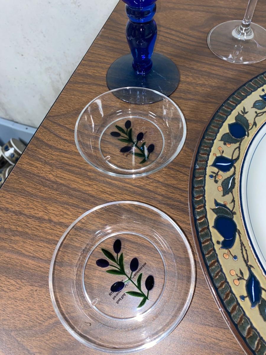 MIKASA SERVING PLATTER, FINGER DISHES AND WINE GLASSES.