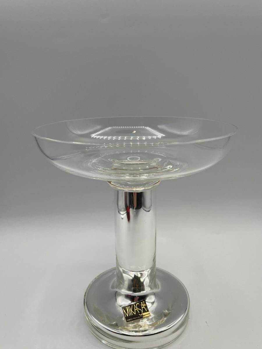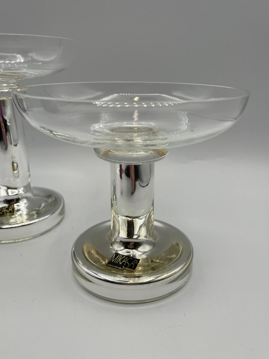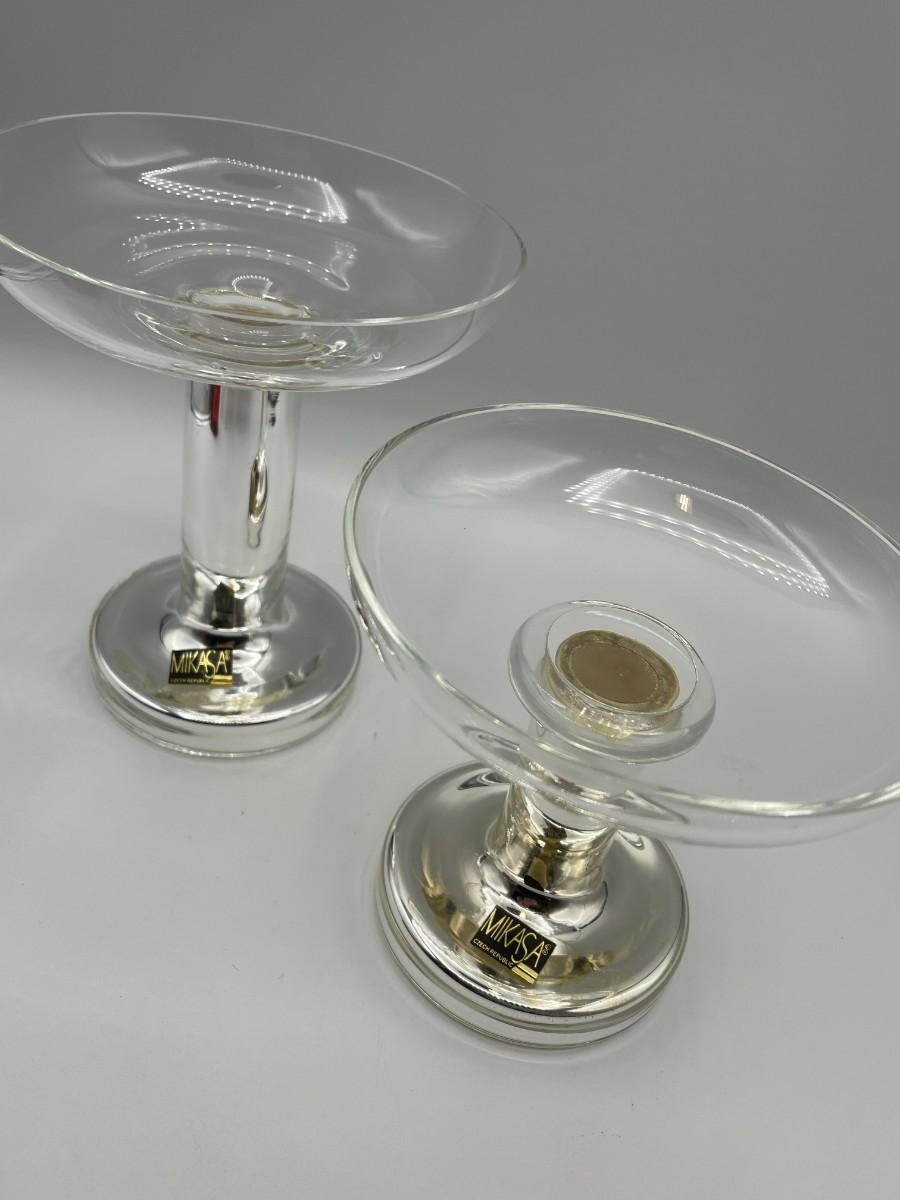 Clearly for candles, but practical for other uses: Such as displaying holiday ornaments, collectibles, potpourri, or even as serving pieces for nuts, candy, dips, or sauces. Reverse painted silver stems, clear bowls. Smaller: 6" Diameter x 5.25" H -- Taller: 6" Diameter x 6.5" H # 787