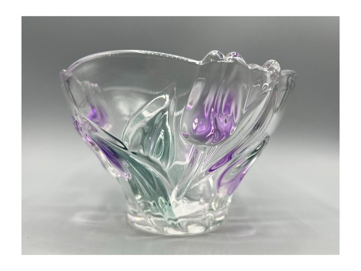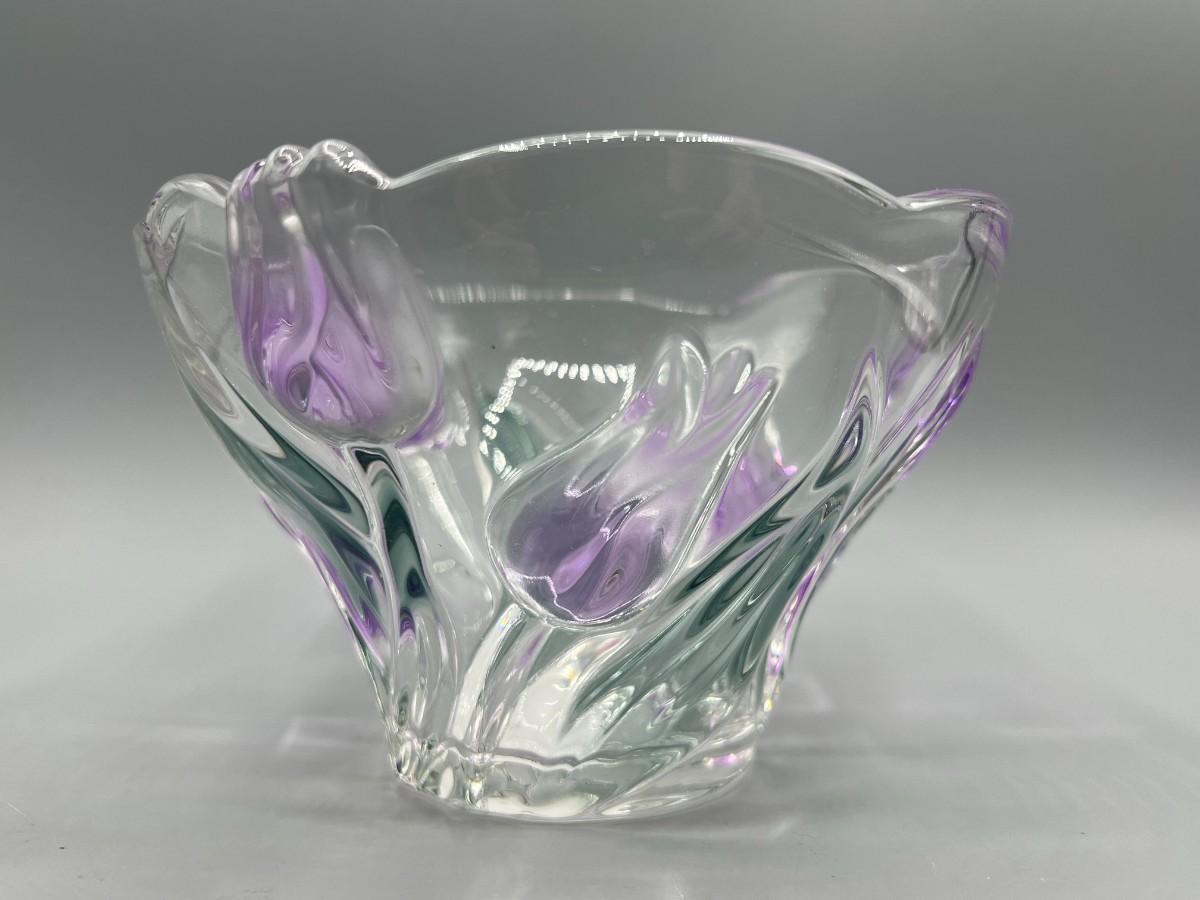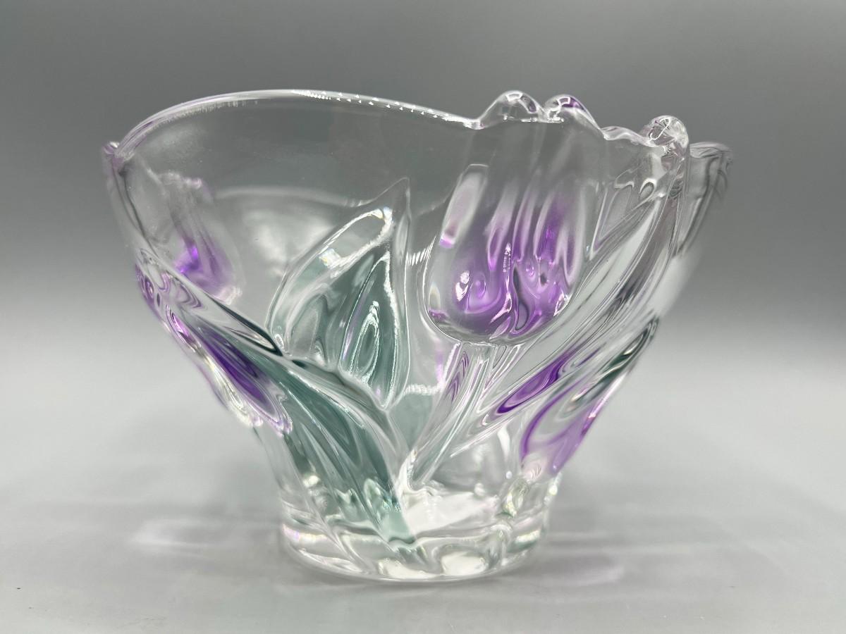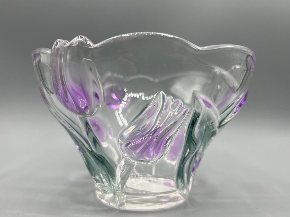 Mikasa Spring Debut Purple Tulips Thick Crystal Glass Bowl
