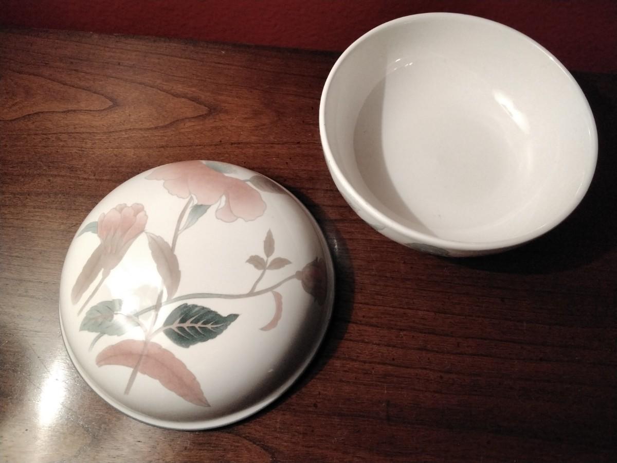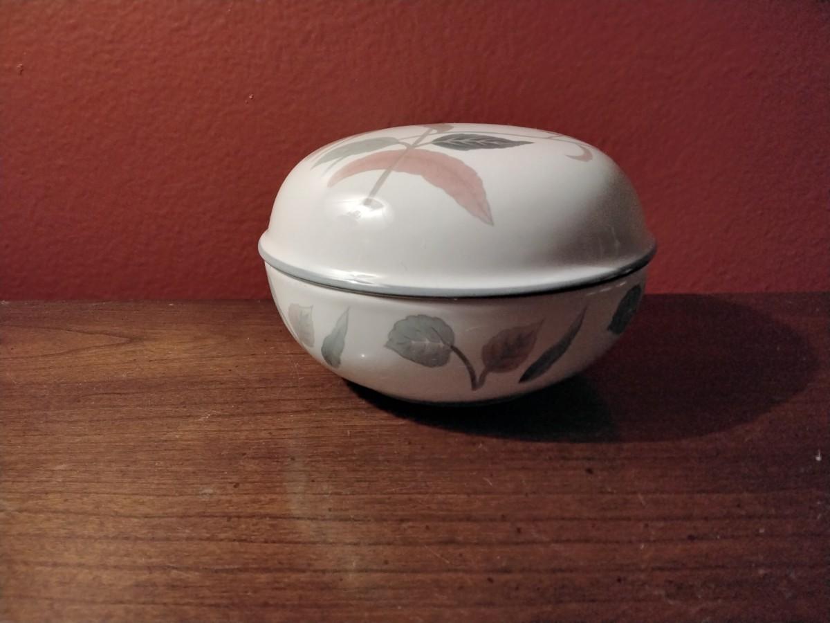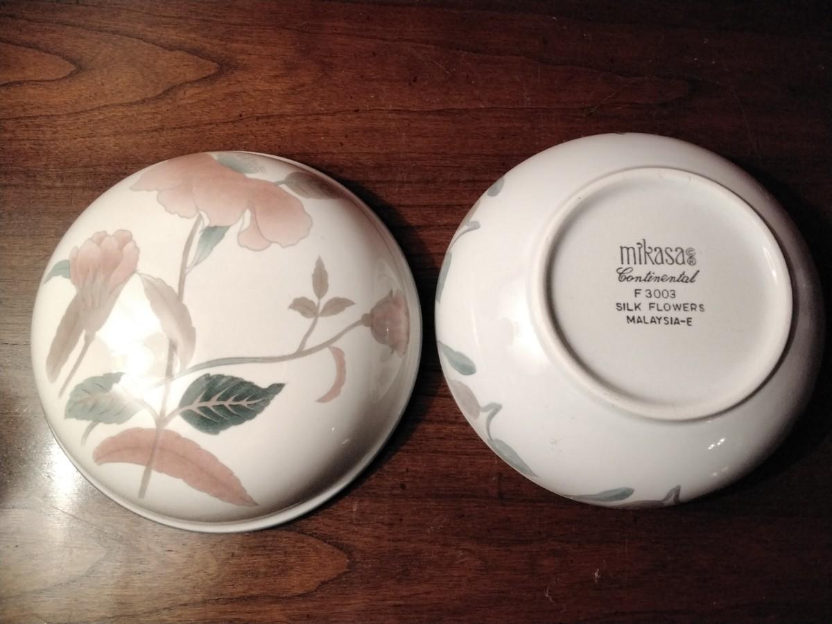 MIKASA BEAUTIFUL AND VERSATILE PORCELAIN DISH THAT CAN BE USED AS JEWELRY BOX ,TRINKET BOX, CANDY DISH. Measurements: Height: 2.5" Width: 5"