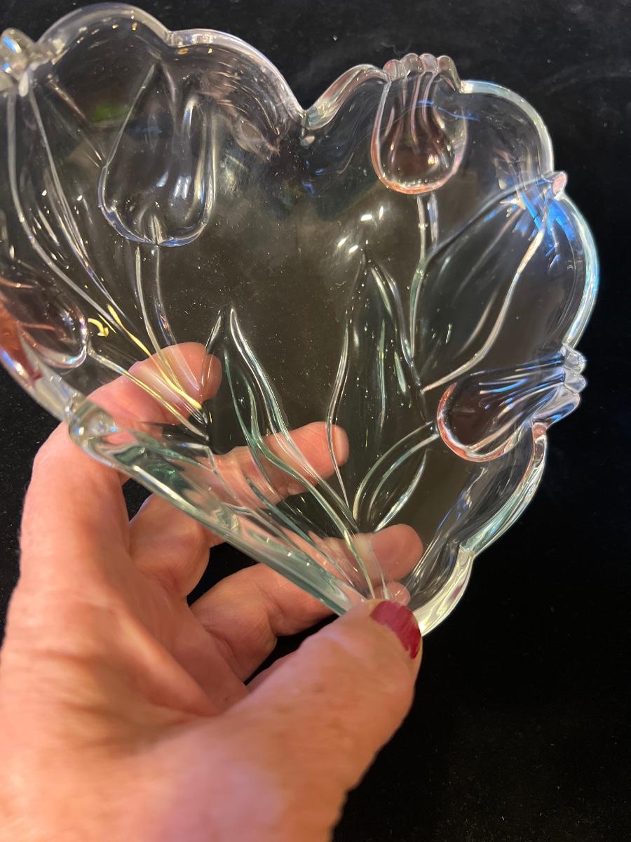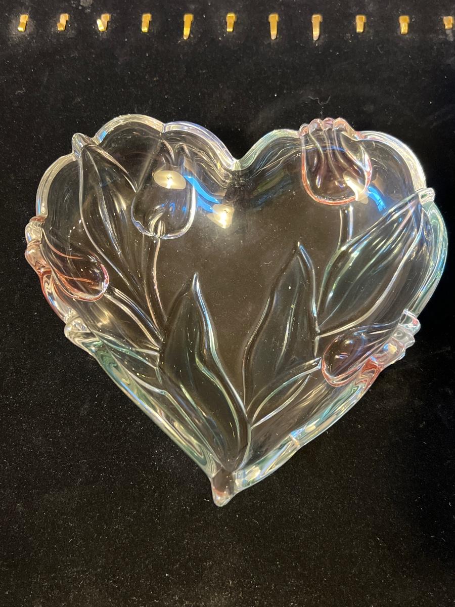 Beautiful heart shaped crystal dish with tulips. MIKASA