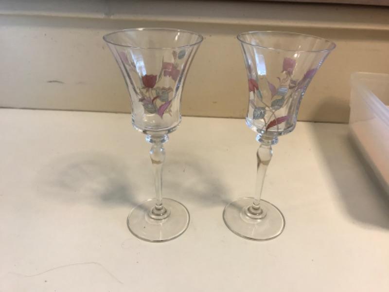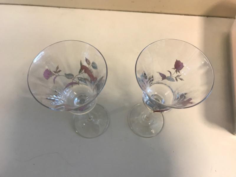 Mikasa Wine Goblets Stemware, painted flowers pink purple
