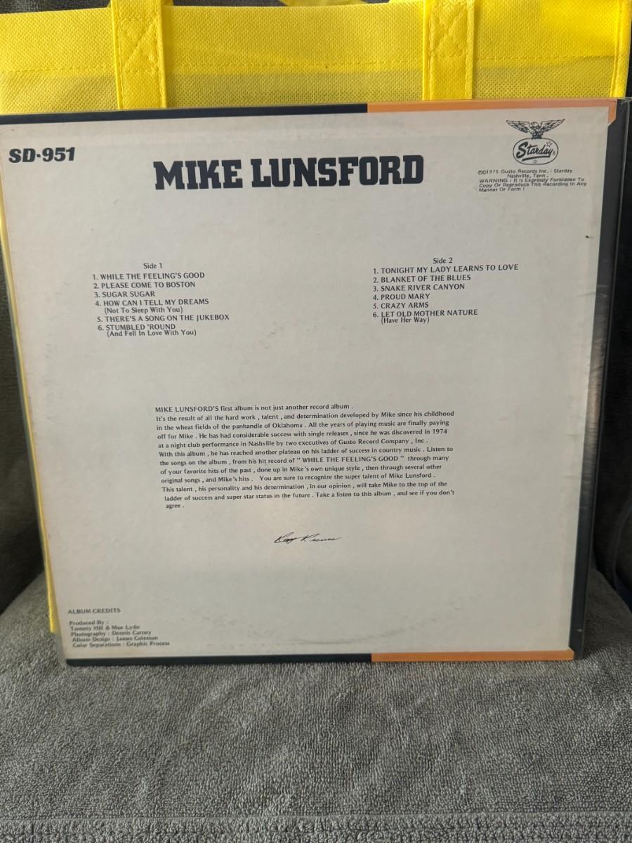 Mike Lunsford, released on the Starday label in 1975 under the catalog number SD-951.
