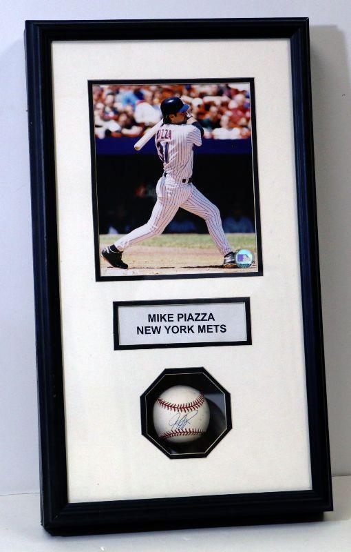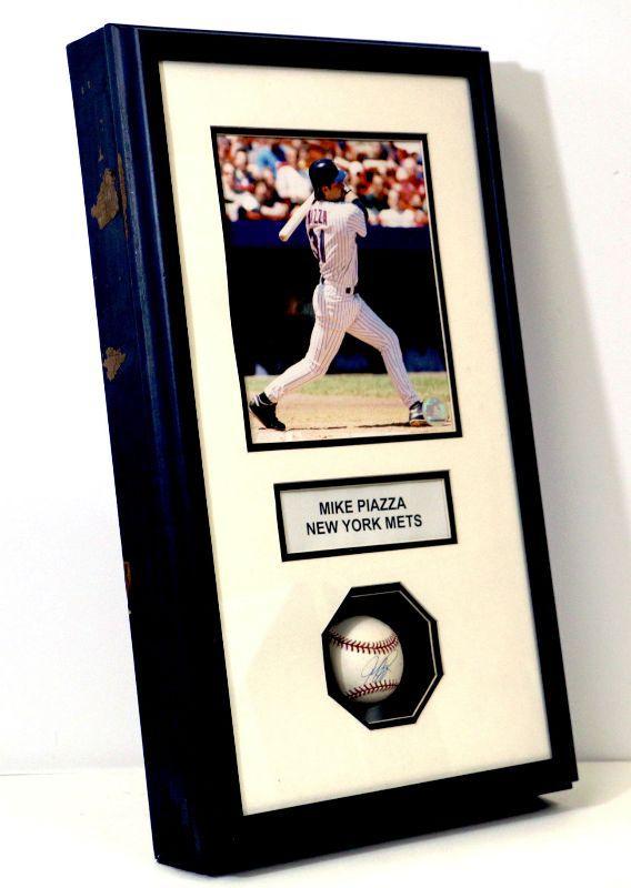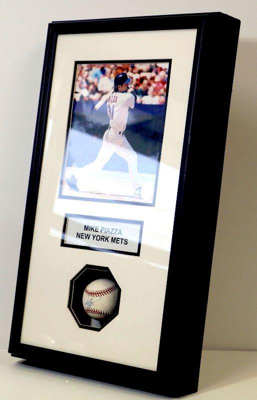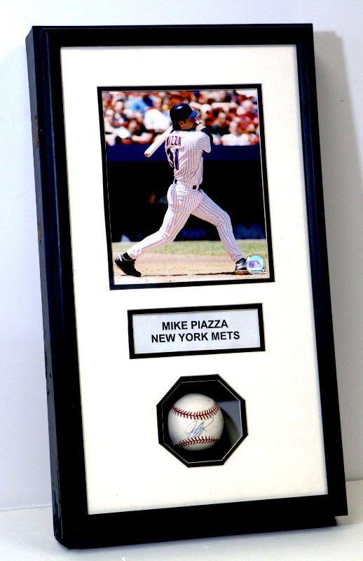 MIKE PIAZZA NY Mets Autographed Baseball + Photo in Frame/Shadow Box - D-048