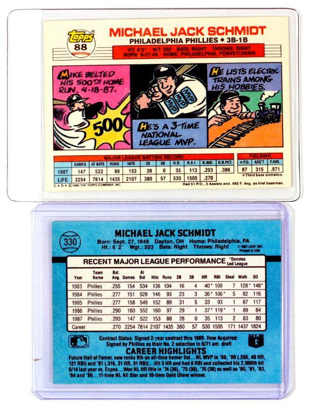 MIKE SCHMIDT Baseball Cards Set 1988 Topps 1989 Donruss - High Grade Cards