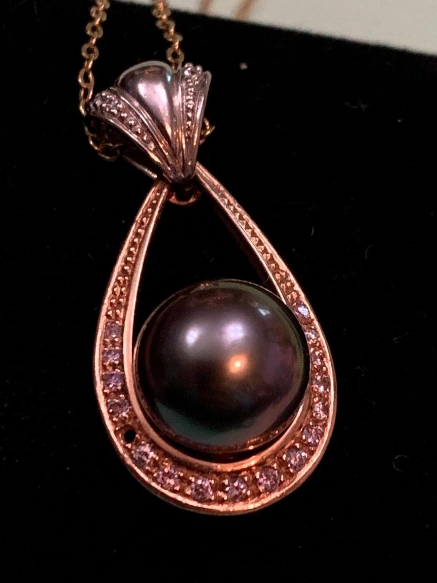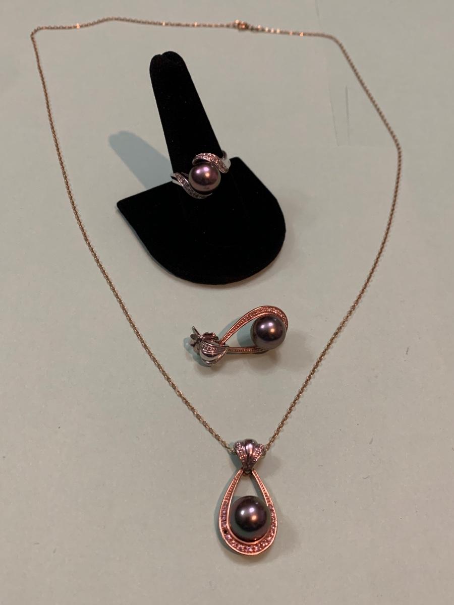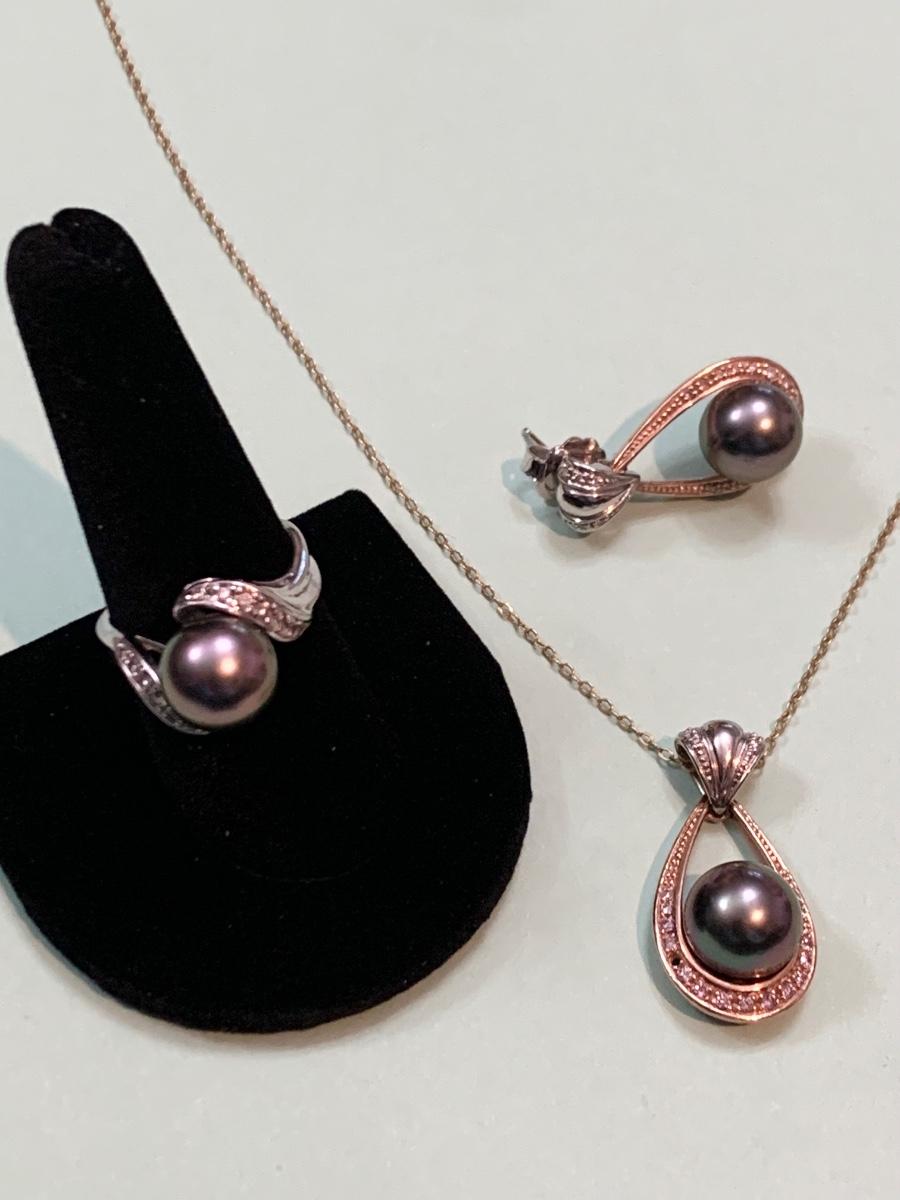 Mikimoto Dark Pearls Matching 14k Necklace & Ring + Single Earring