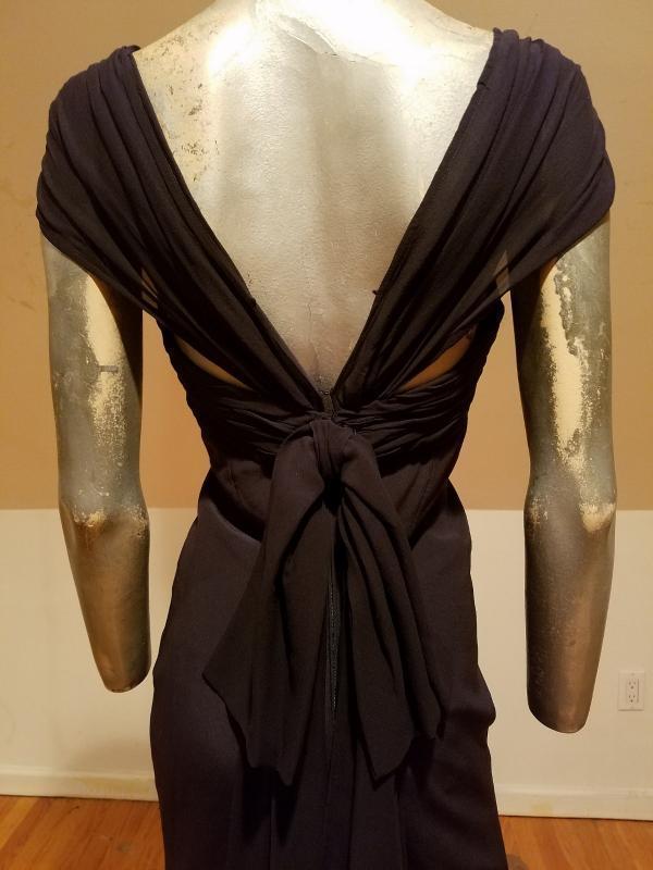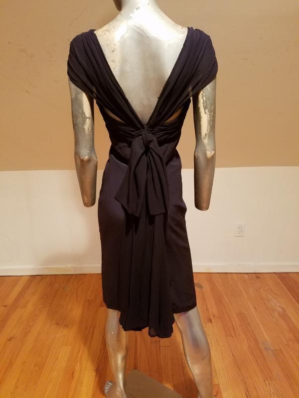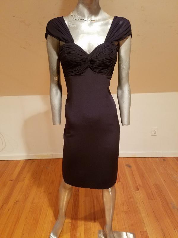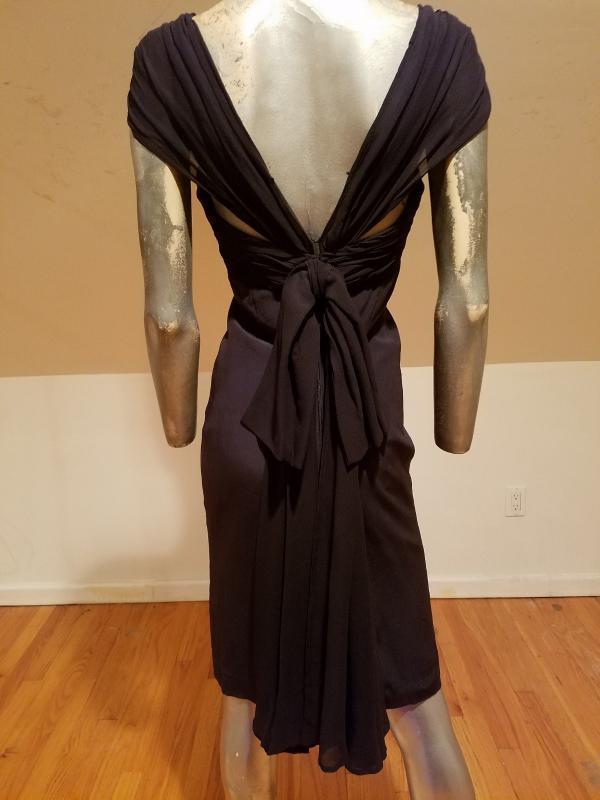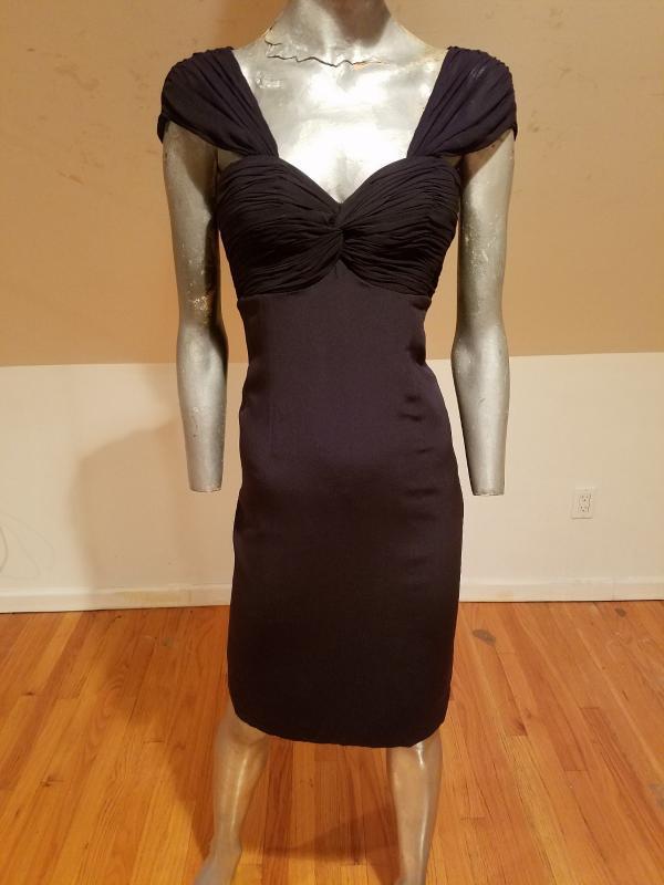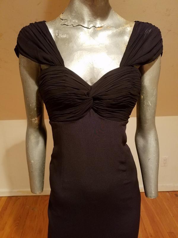 Stunning Designer Mila Schon dress 100% silk Chiffon with shirred details and back waterfall bow. Amazing vintage condition . Made in Italy Euro size-40