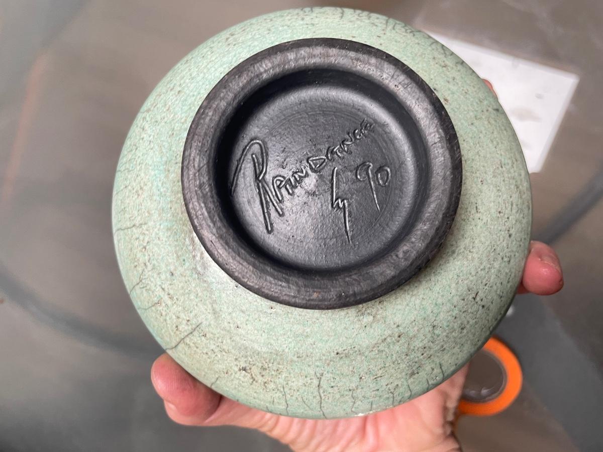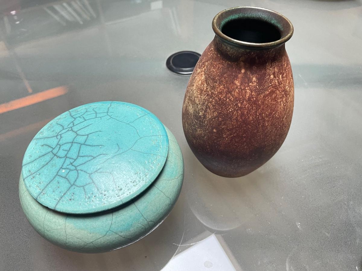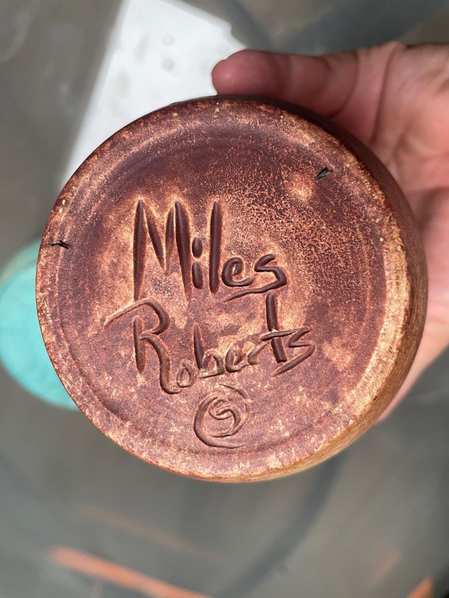 Miles Roberts signed Brown Vase & Teal Covered Compote