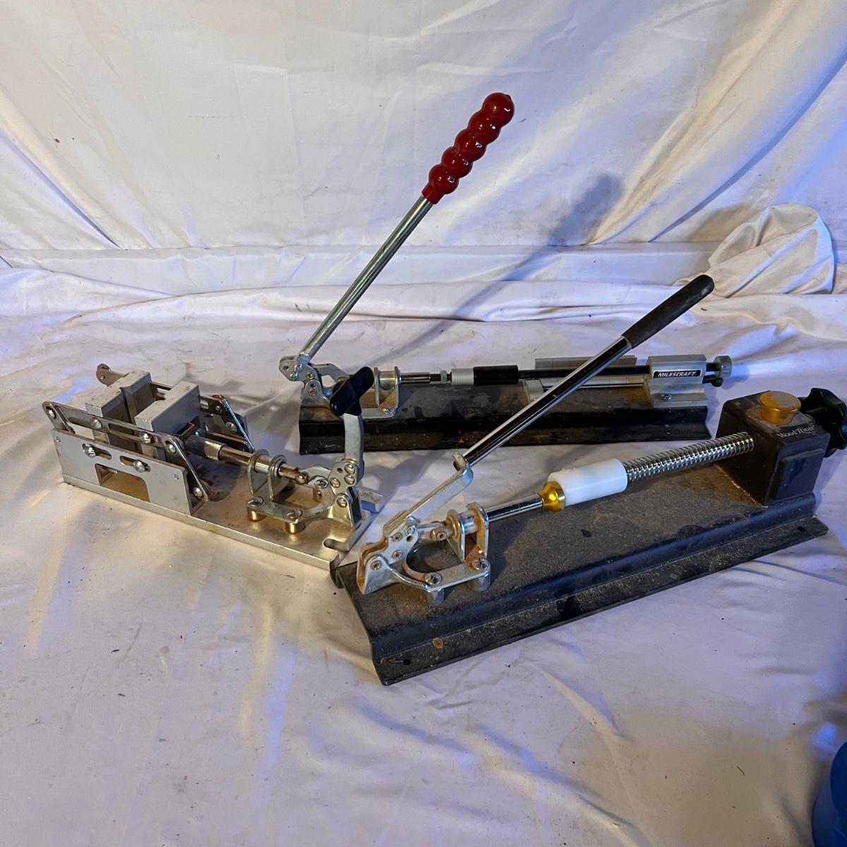 Three items includes two pen presses and a push/pull toggle clamp workbench.