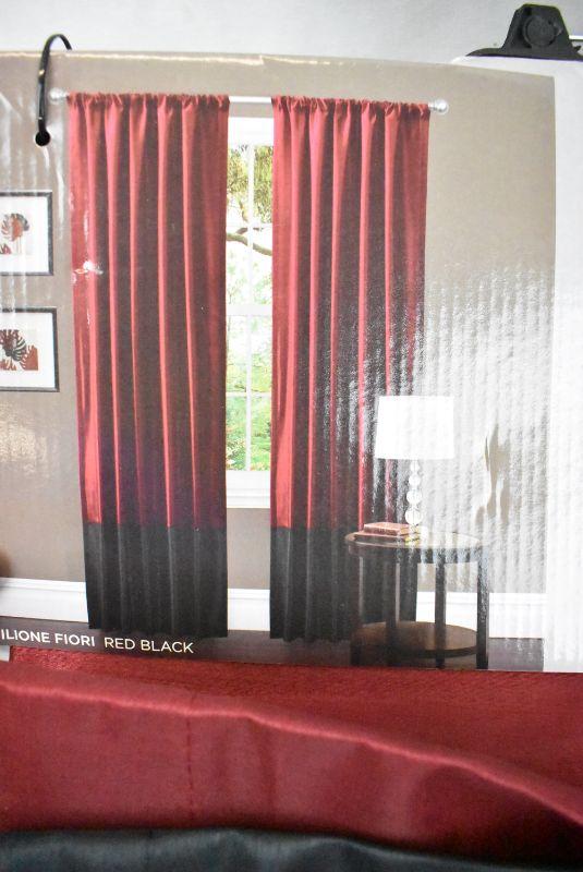 Milione Fiori Red/Black Window Curtains, Pair. Red/Black 42"x84" each panel - New