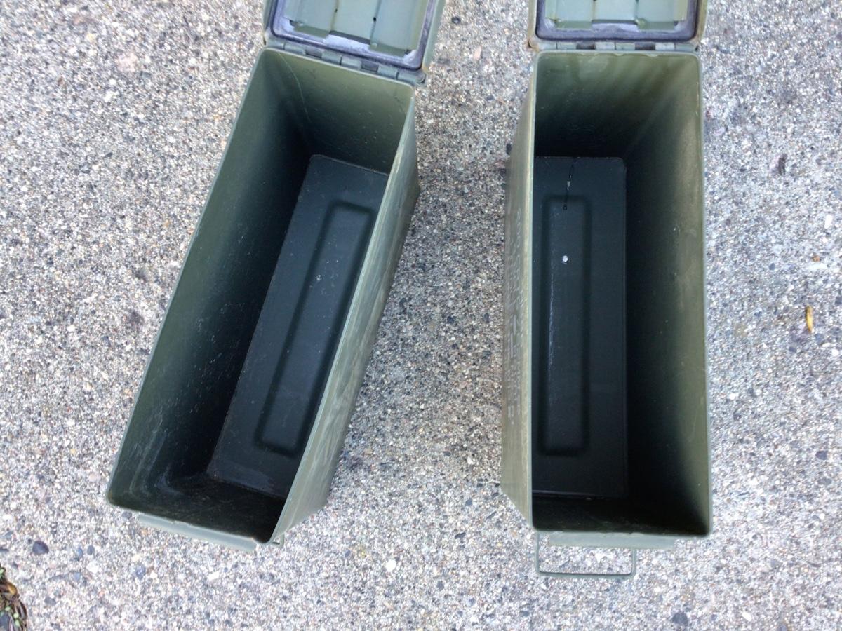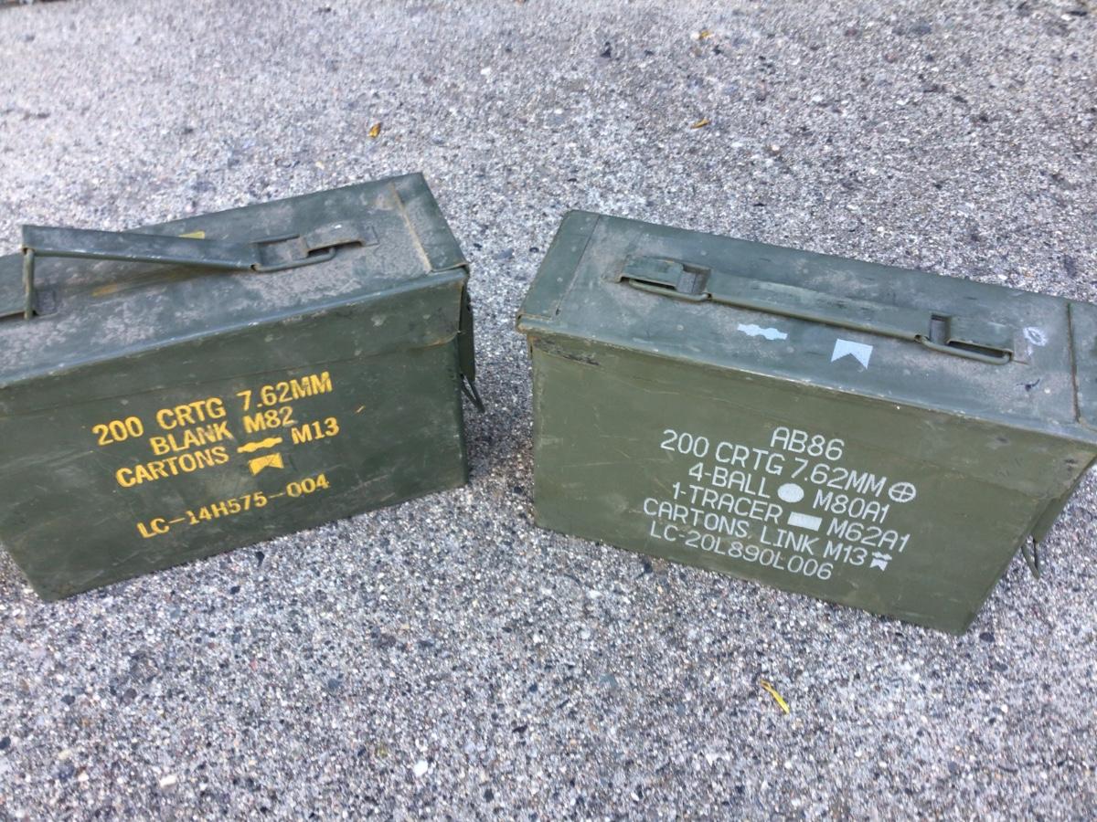 Set of 2 metal military ammo boxes. 7.62 mm shells.