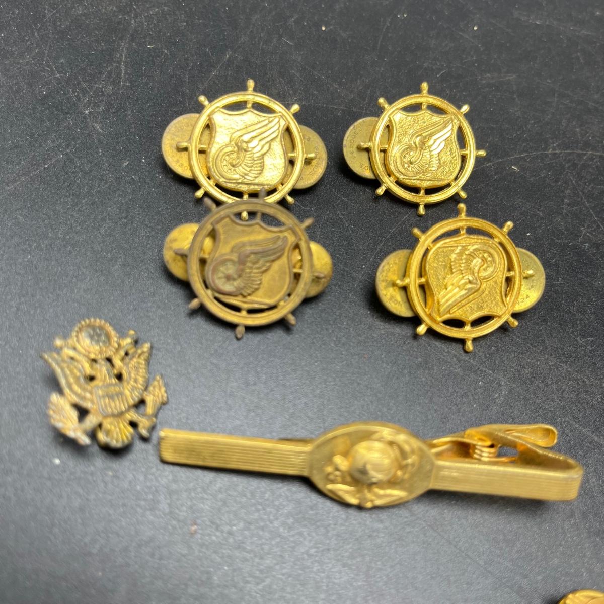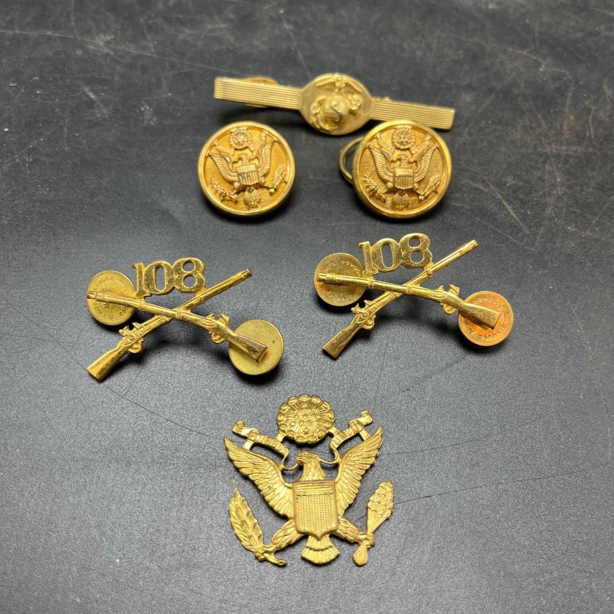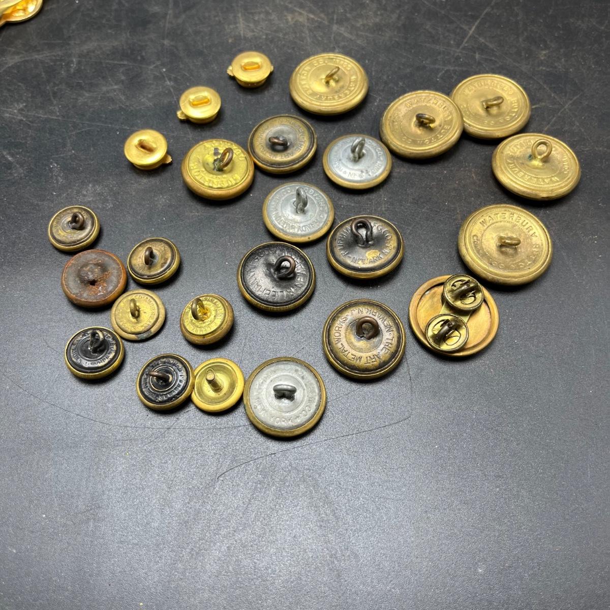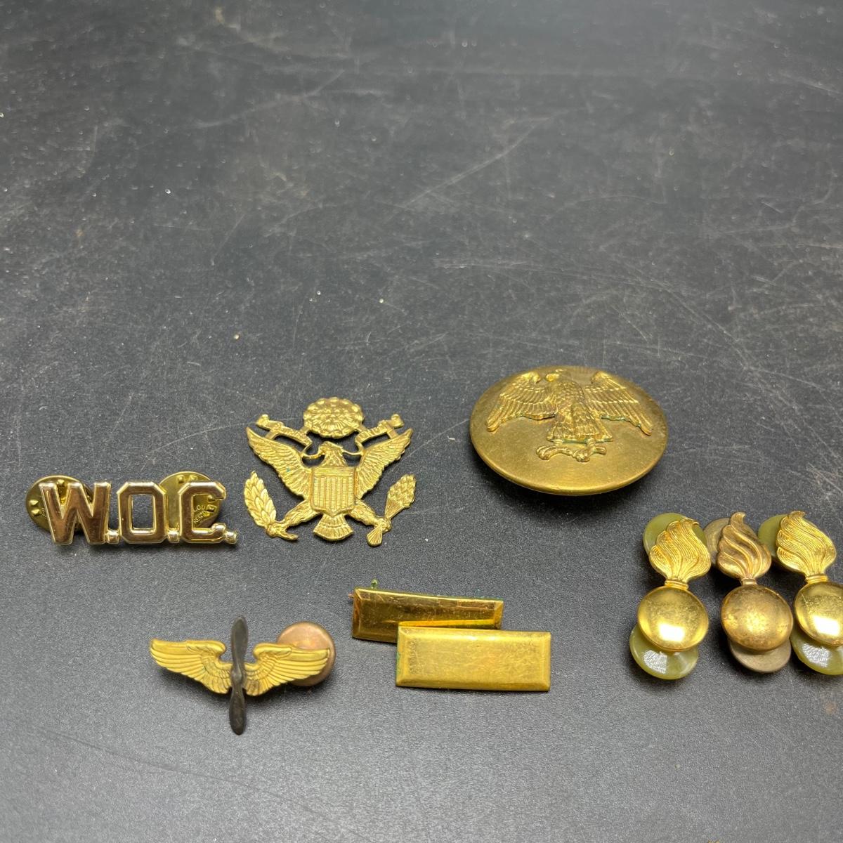 Lot includes a plethora of military buttons and pins that most appear to be brass.