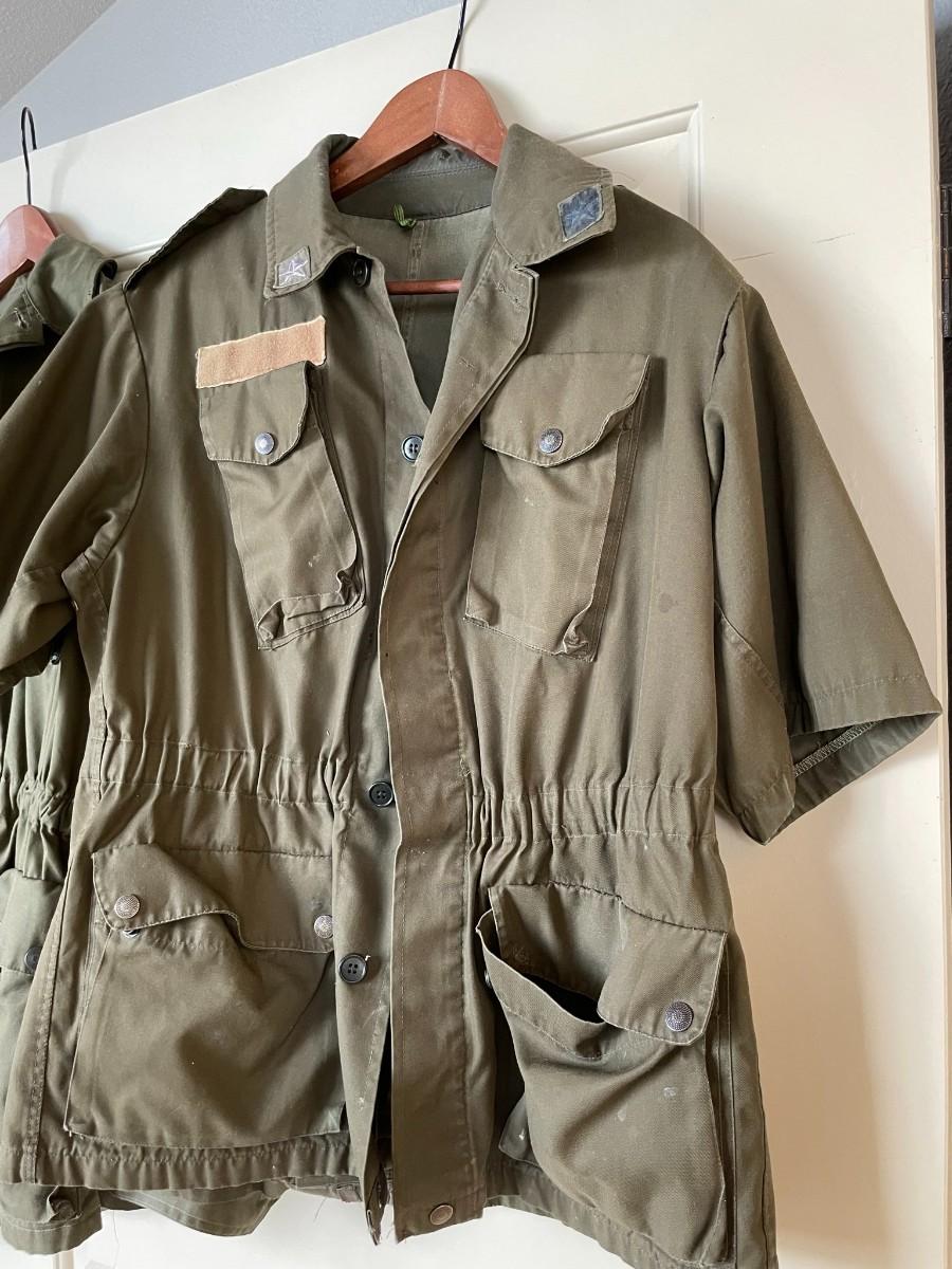 2 Military Jackets - 1 short sleeve, and 1 long sleeve, no sizes but appear to be a L.