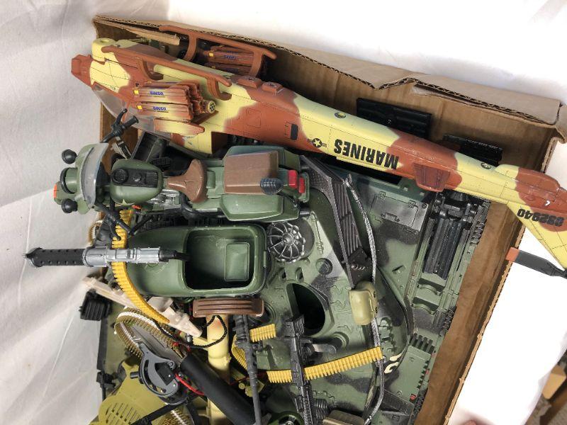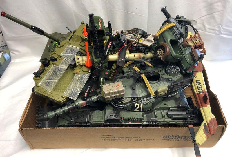 Tanks, Machine Gun Motor Cycles, Launch Platform, 8+ Vehicles, Mild play wear imperfections as pictured, Vehicles are Plastic Item(s) are Sold as is - Photo's are part of the Description - Shipping is available or Pickup by Appointment